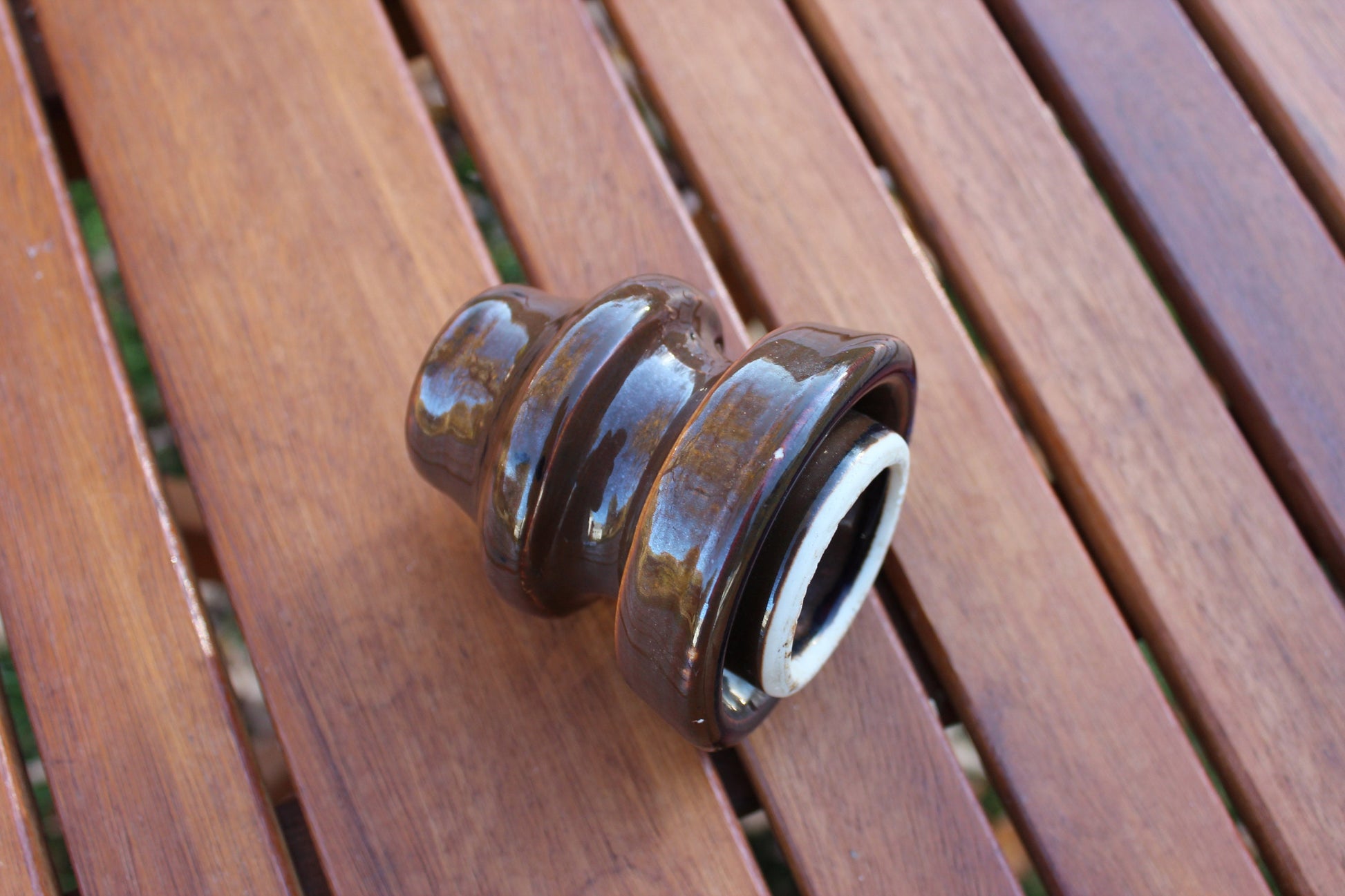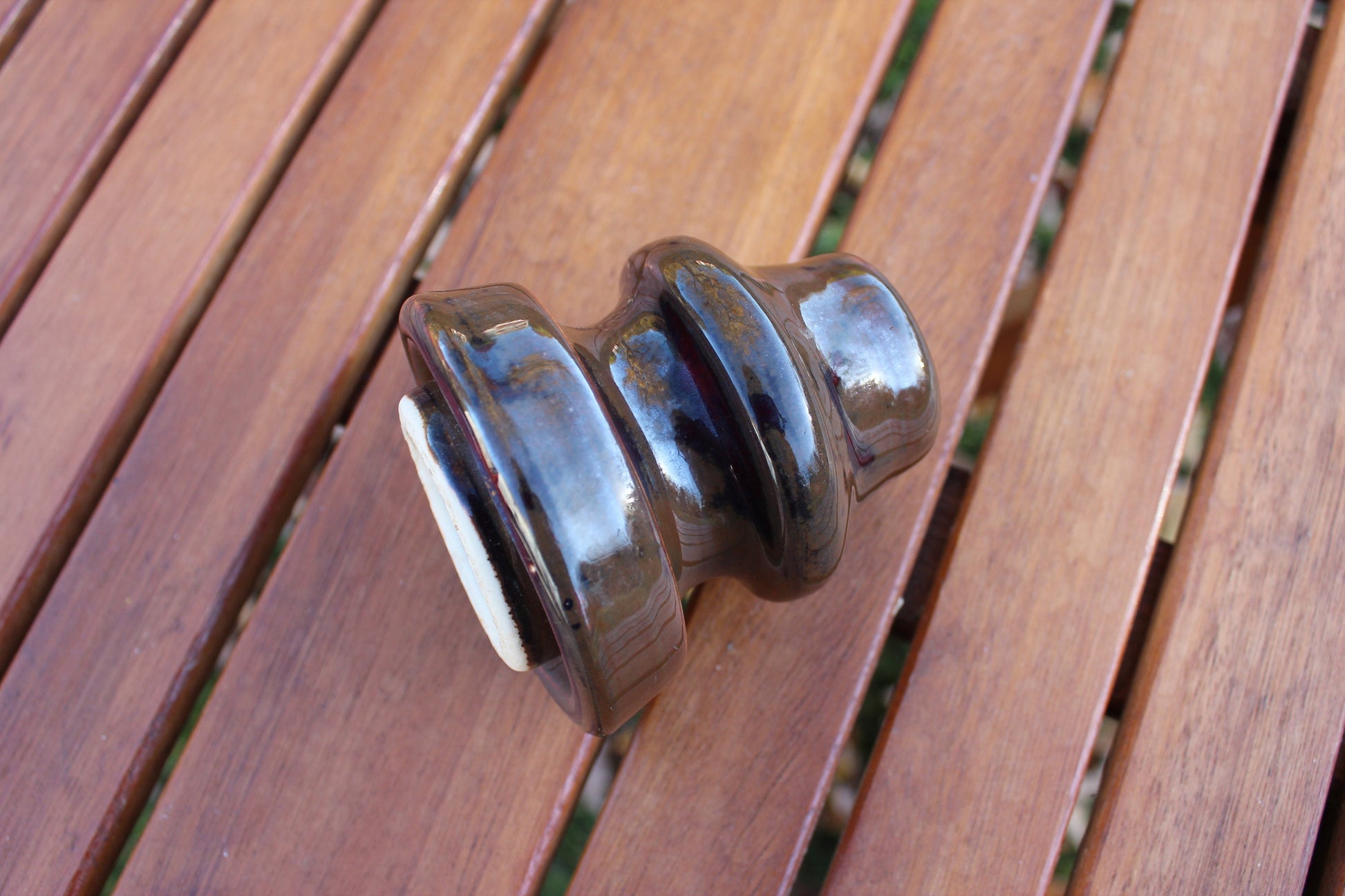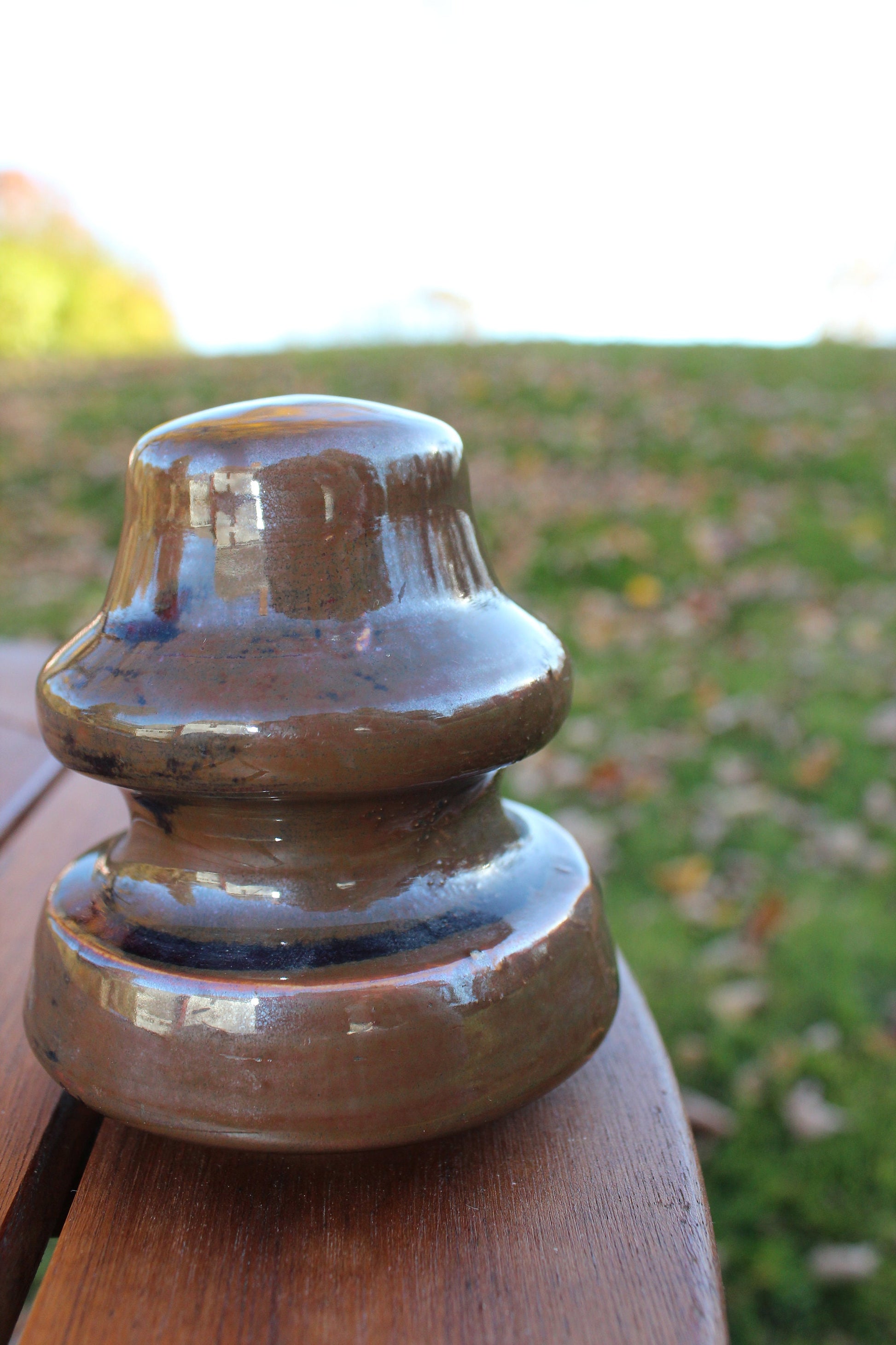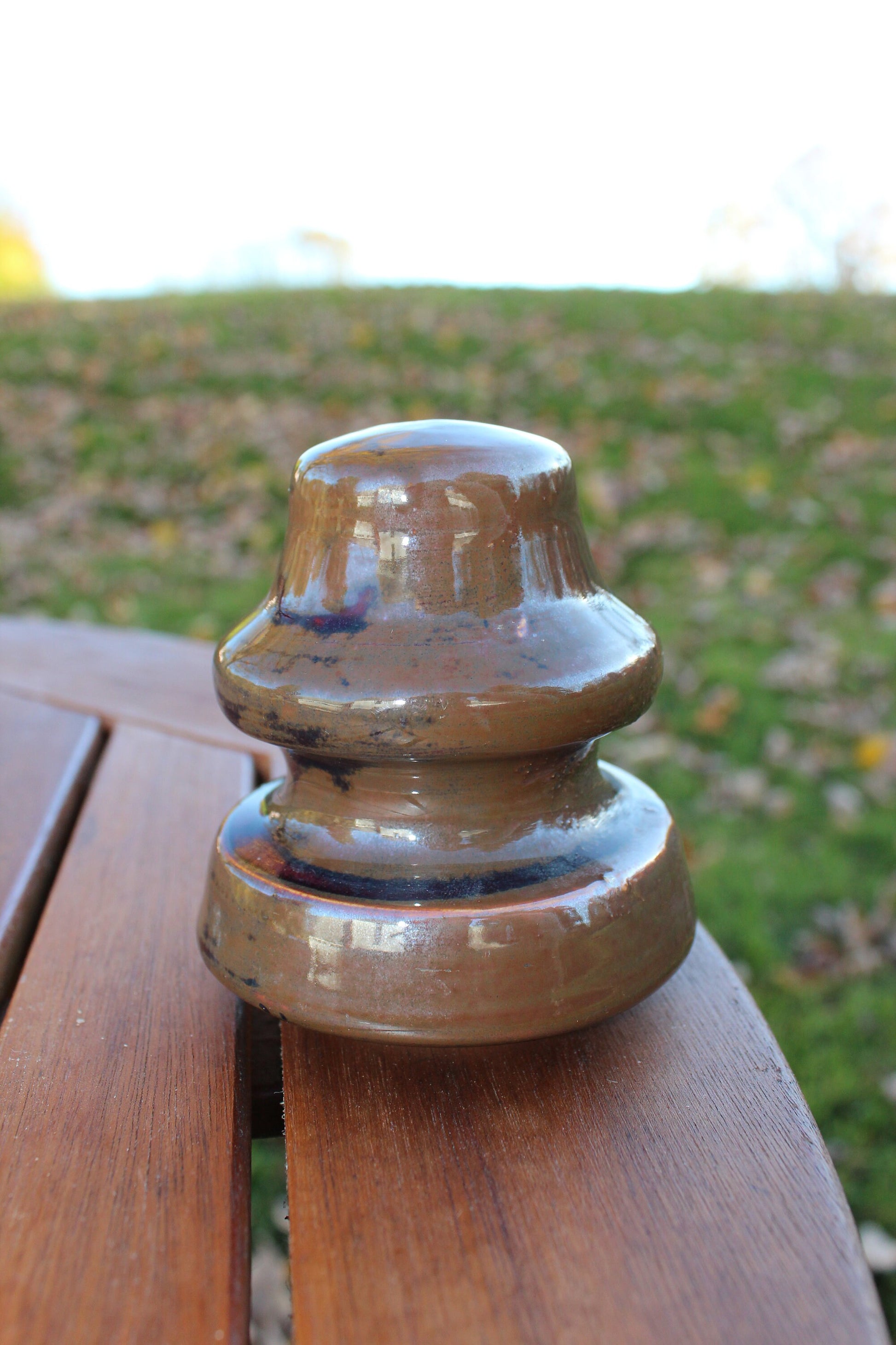 The decorative possibilities for these pieces are many. The collector will appreciate these because of its design and age. The glazed brown tones of the insulator are beautiful. It would make an excellent paper weight