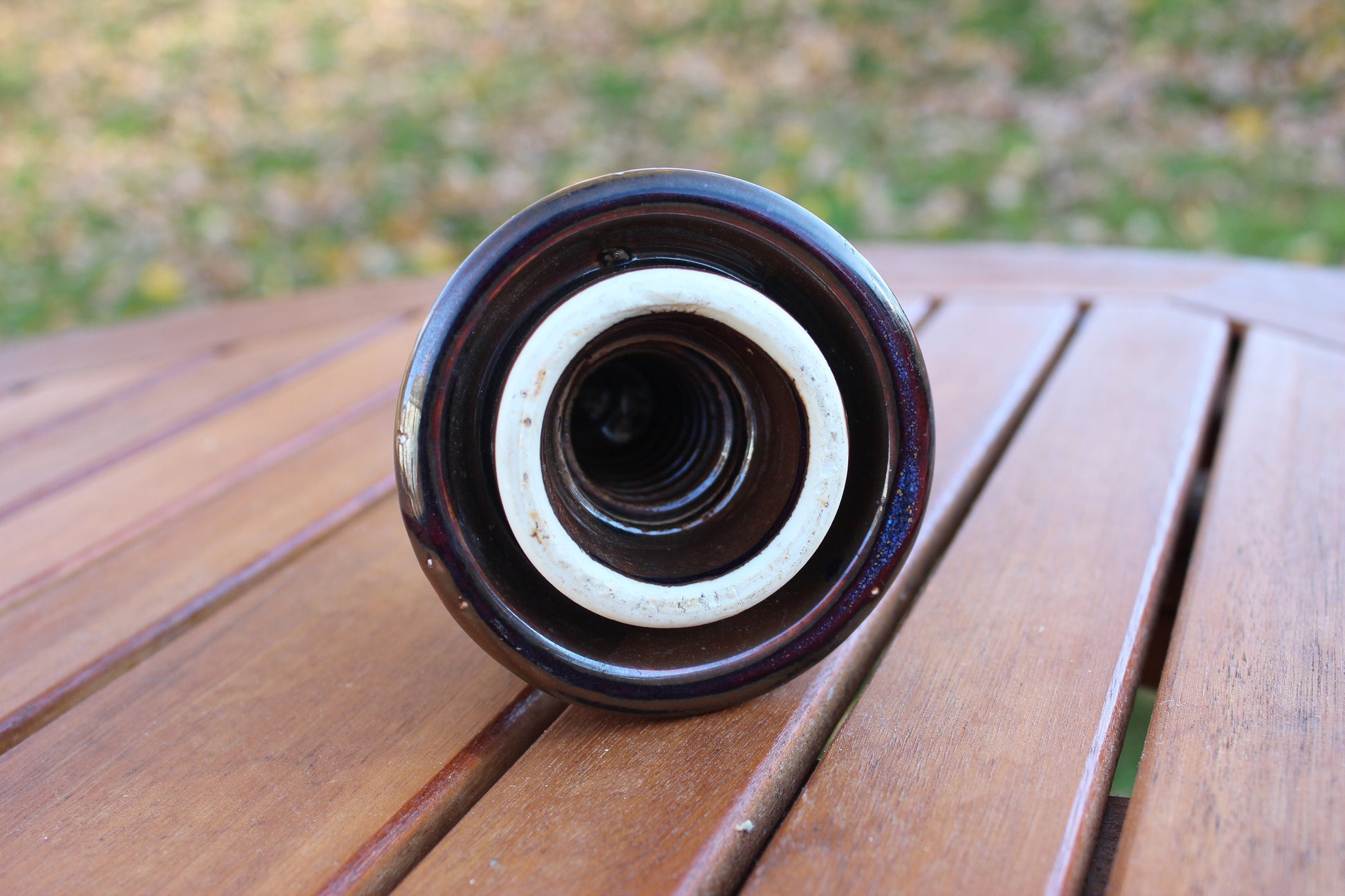 This is an antique porcelain insulator, in remarkably good condition to be nearly 90 years old. The top has not been altered. The threads look good. There are no cracks or chips.