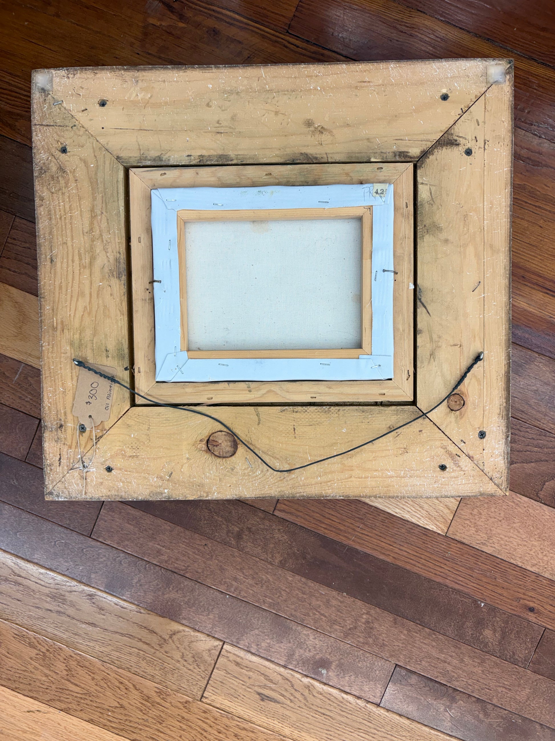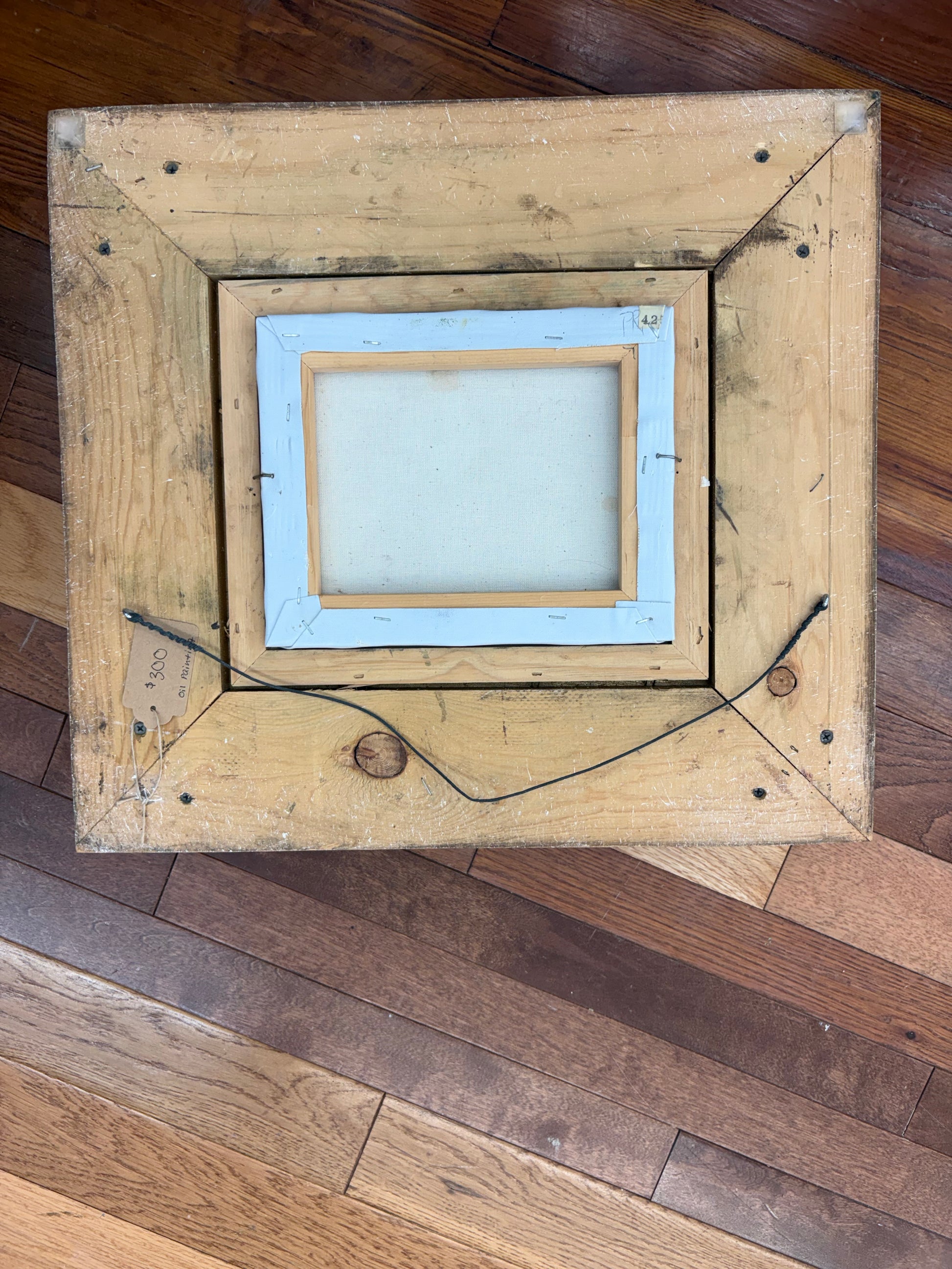 Excellent vintage condition. Canvas is clean, paint layer stable; frame shows only tiny gilt rubs at outer tips—no losses or separations. Ready to hang with sturdy wire.