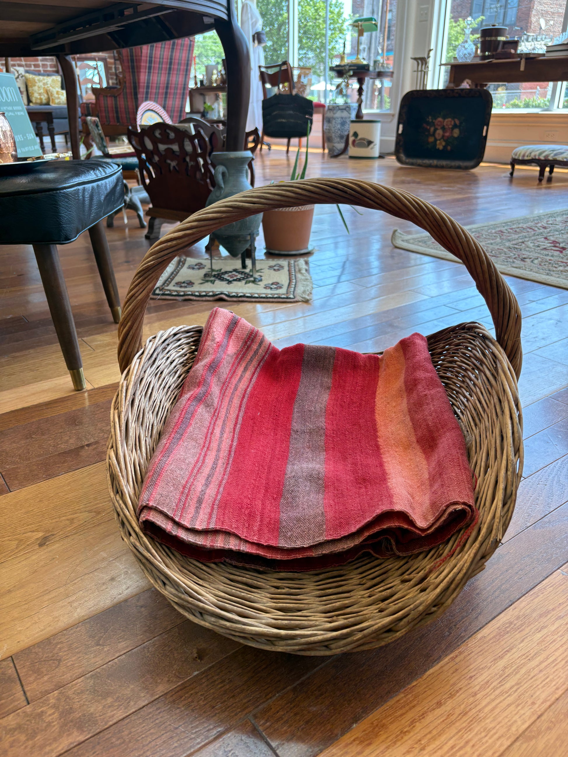 Large French Wicker Gathering Basket – Rustic Garden Flower Carrier, 23″ Long