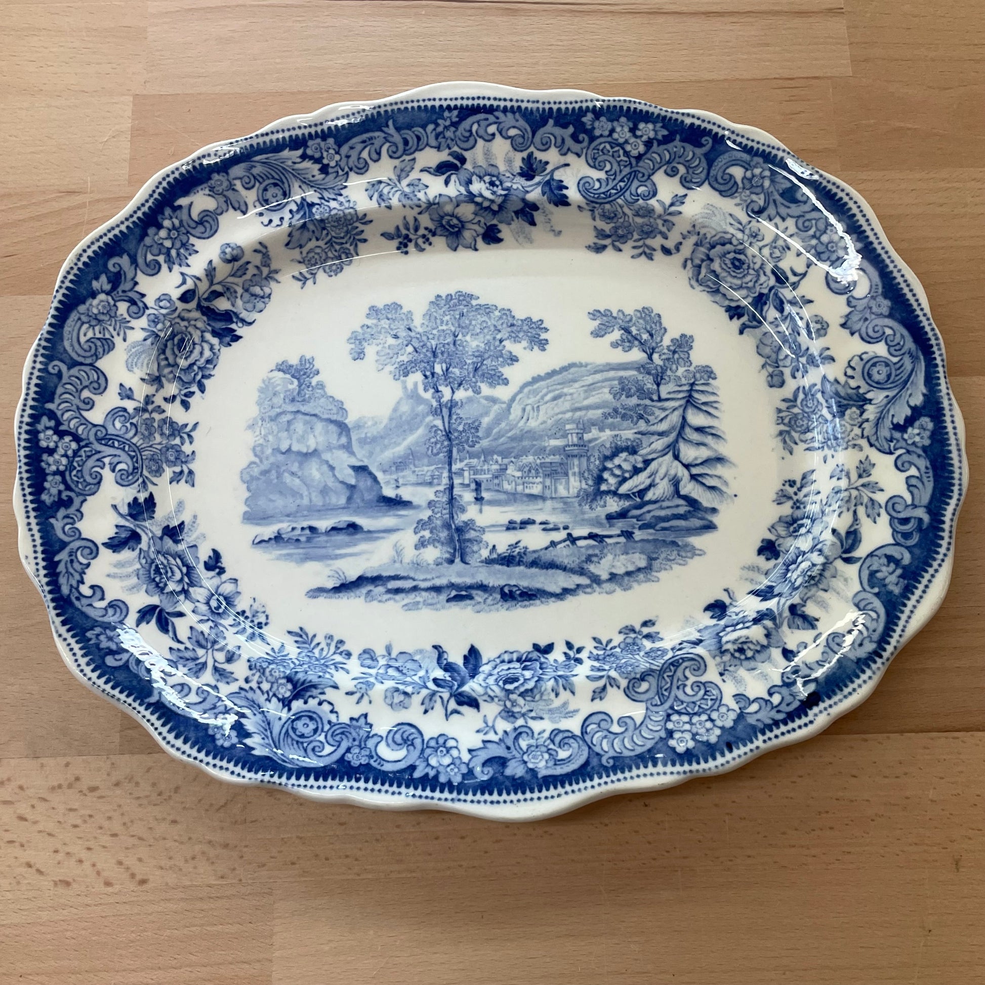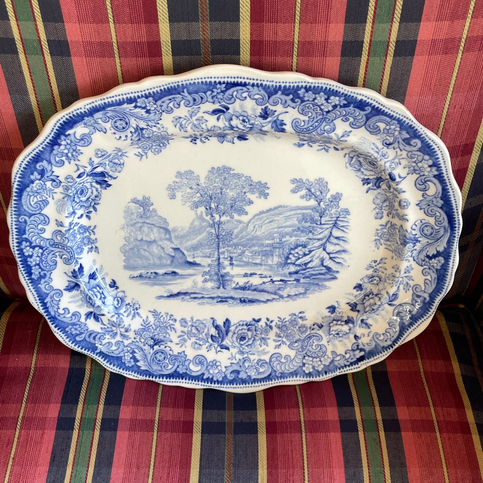 Antique Copeland Spode Blue Transferware Serving Platter – England