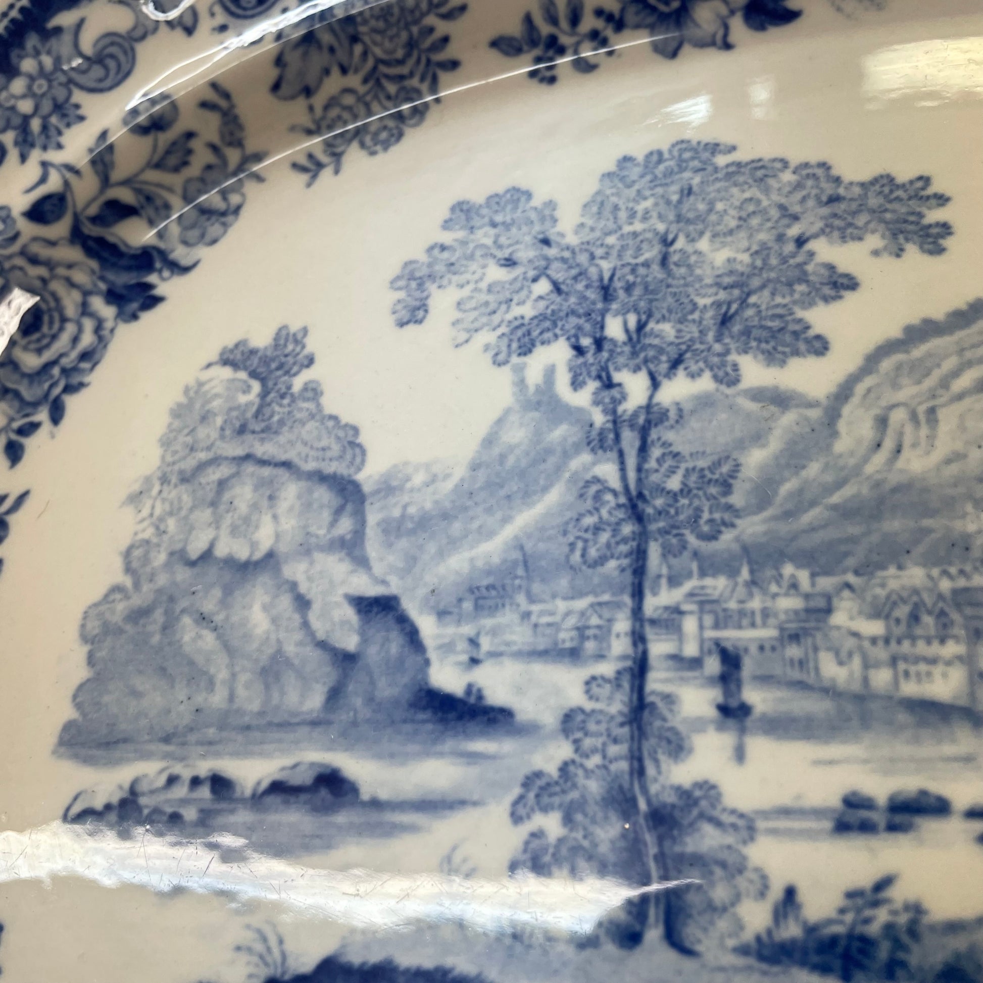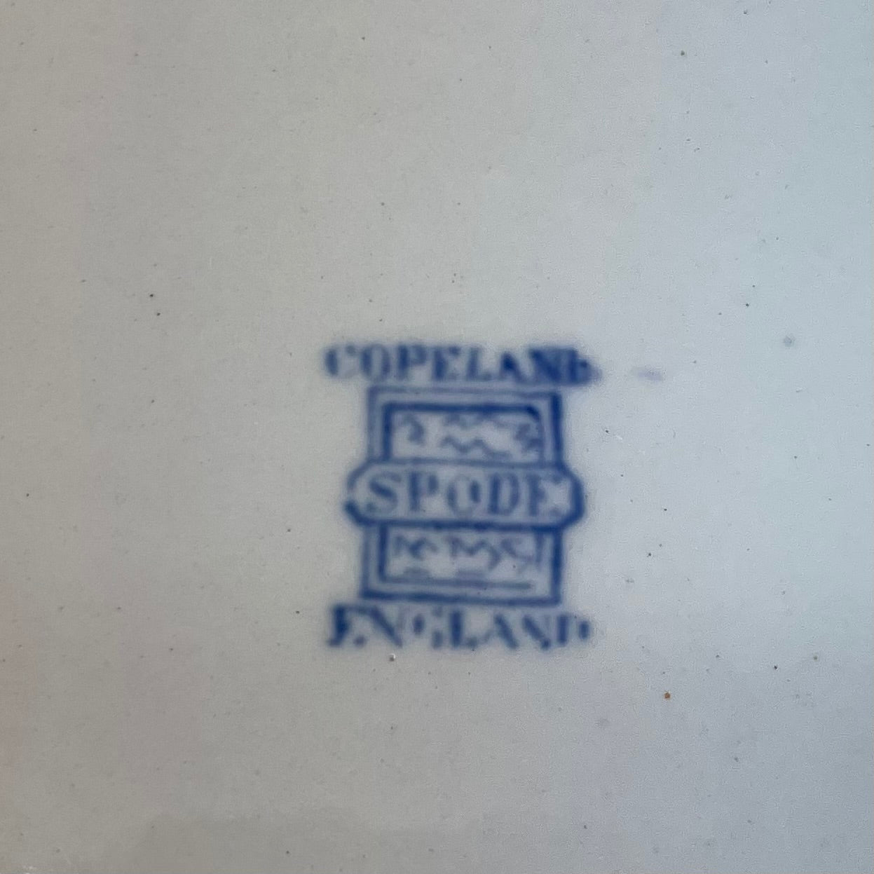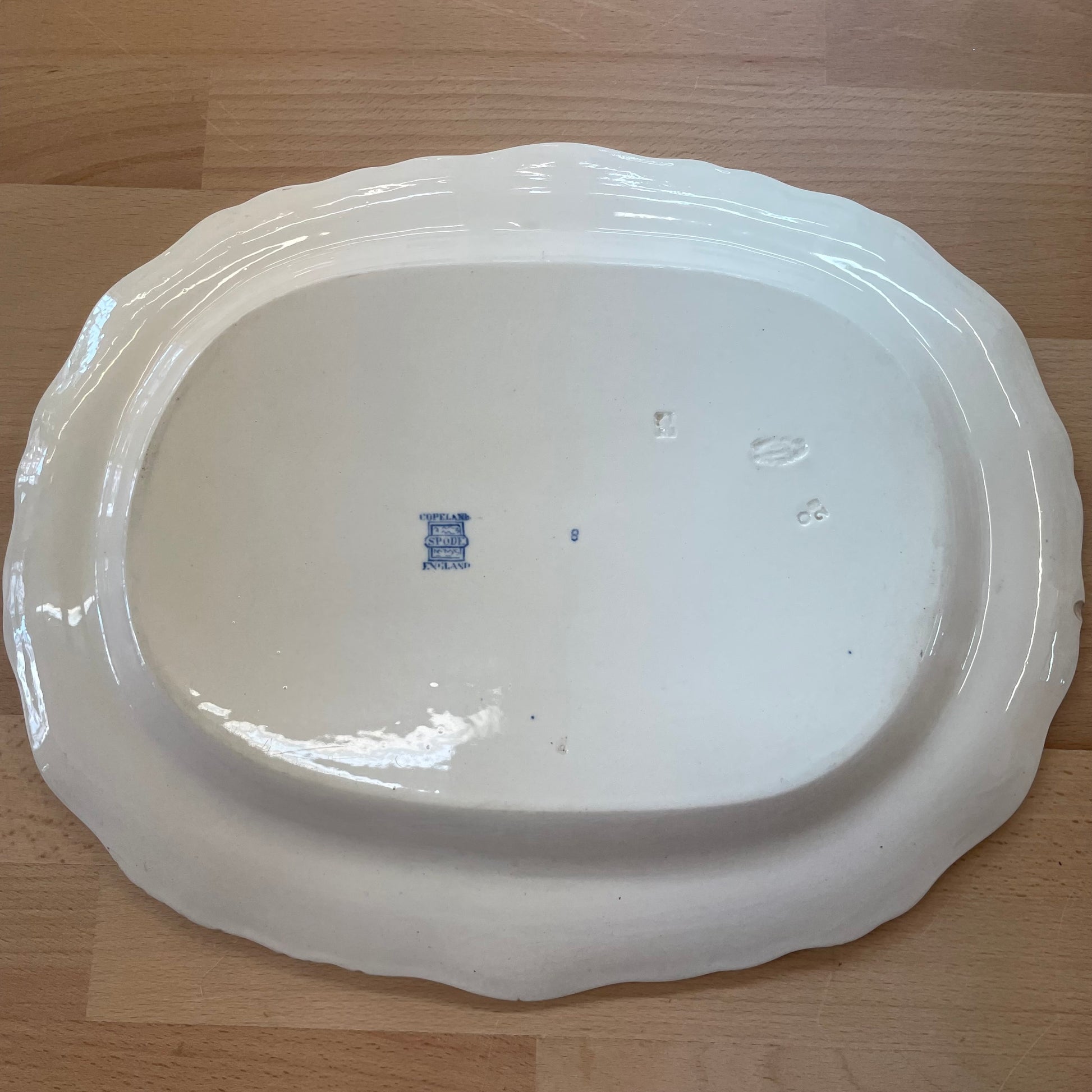 Marked on the base with “COPELAND SPODE ENGLAND” and additional impressed maker's marks, this piece remains a favorite among collectors of transferware and English china. A lovely display piece or serving platter, despite a small chip underneath that does not affect its beauty or function.