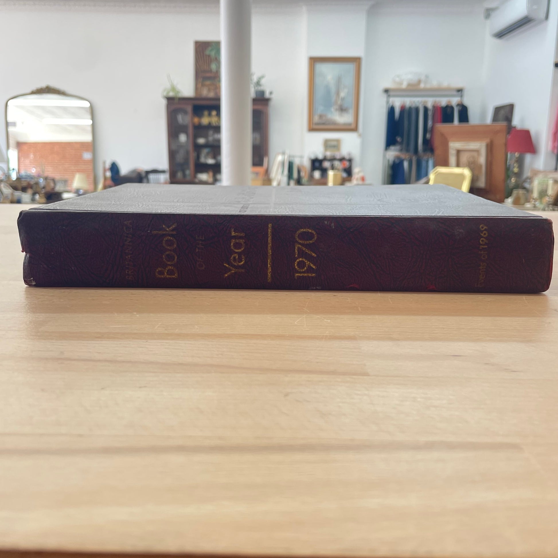1970 Britannica Book of the Year | Vintage Encyclopedia Volume Covering 1969 Events | Maroon Hardback for Styling & Library Decor