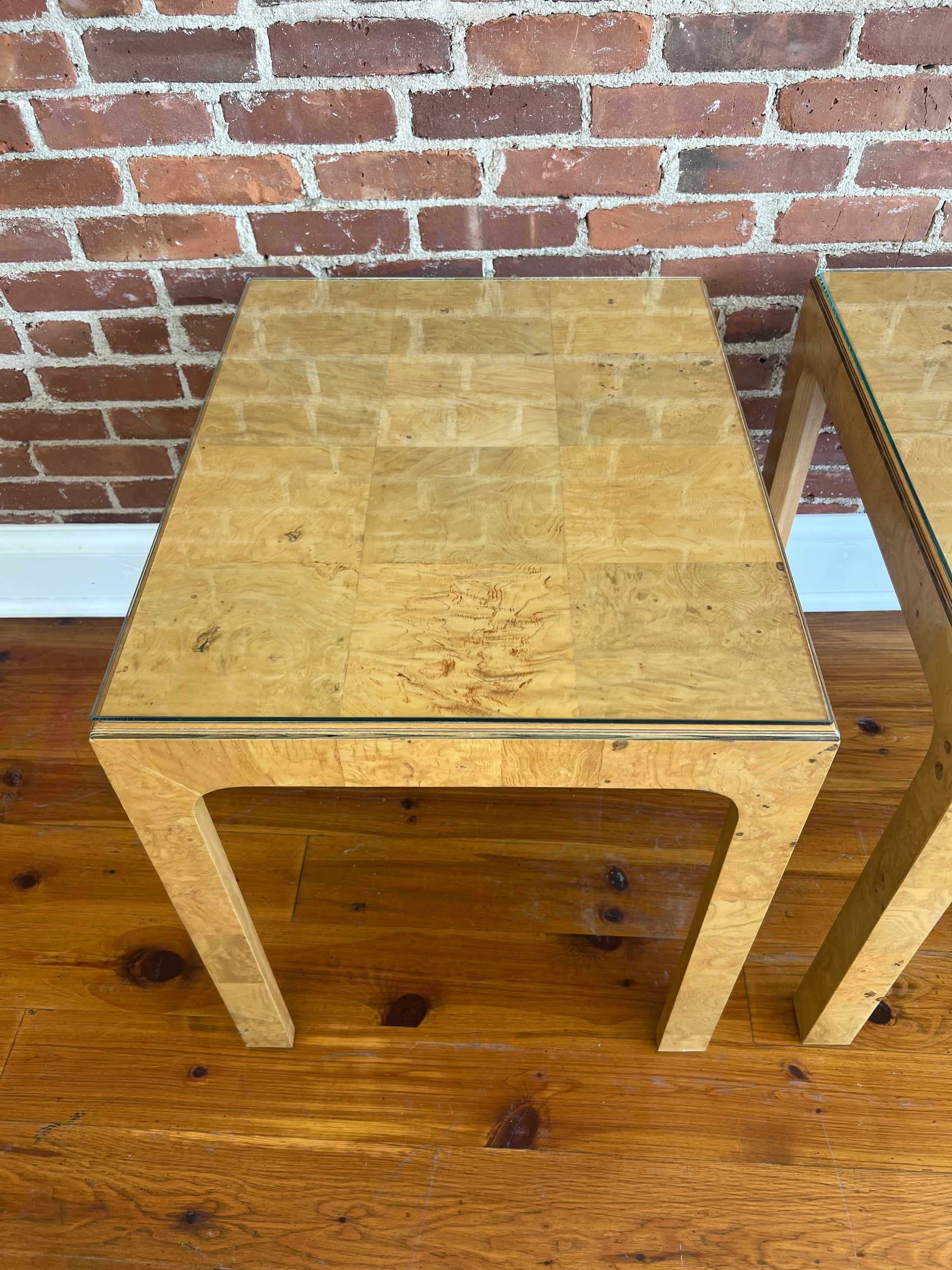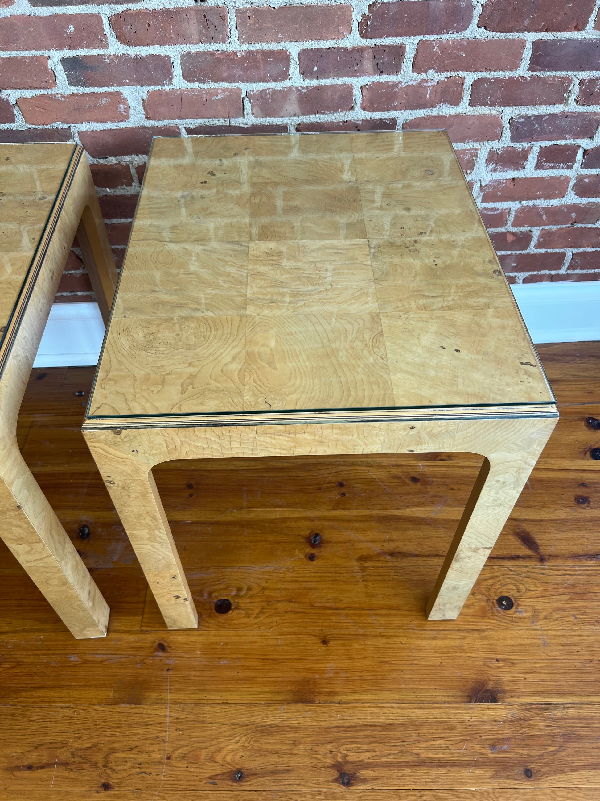 Pair of Henredon Scene Two Burl Wood & Glass End Tables, 1980s MCM
