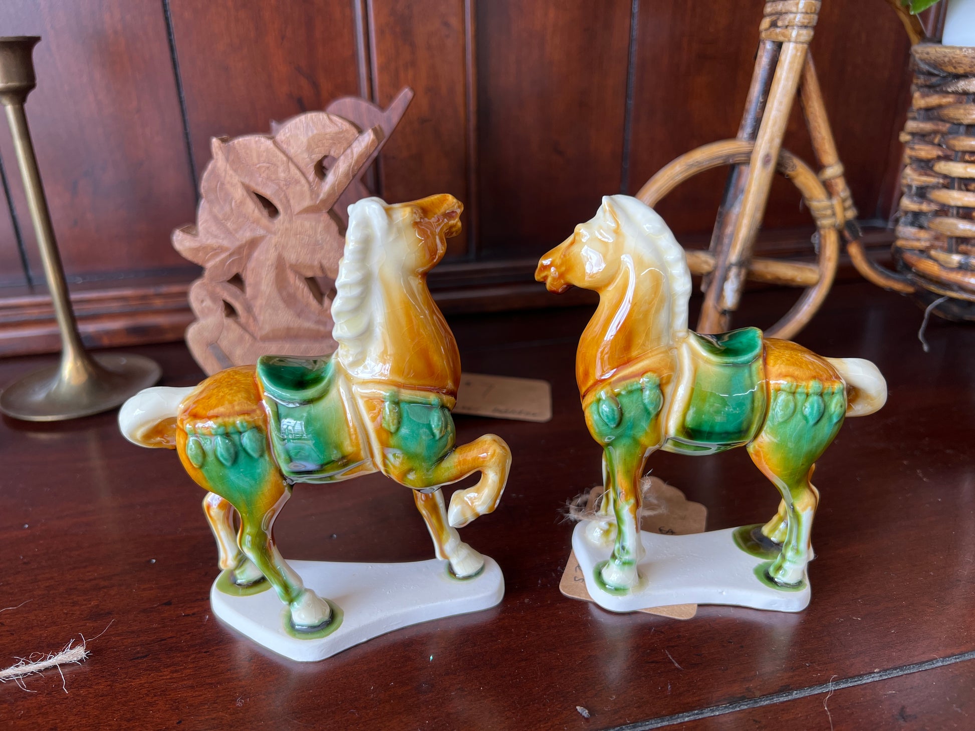 Vintage Ceramic Horse Figurines, Hand-Painted Tang Style Pair