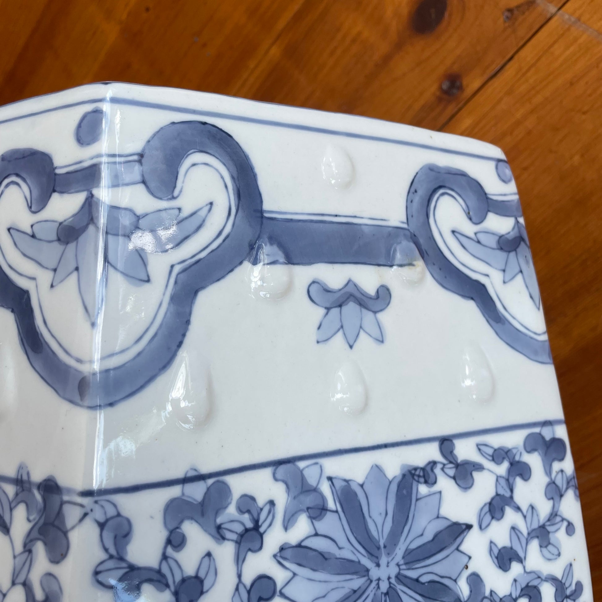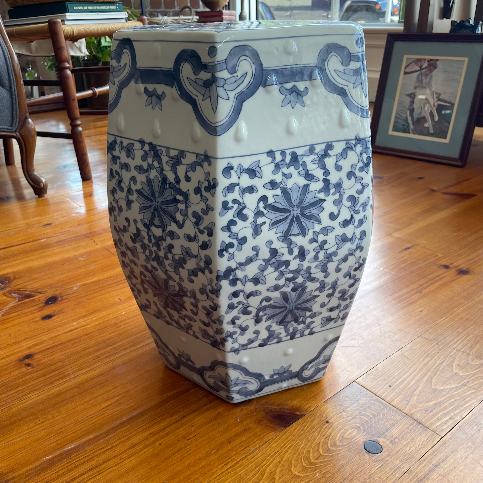 Blue and White Hexagonal Porcelain Garden Stool – Chinese Style Accent
