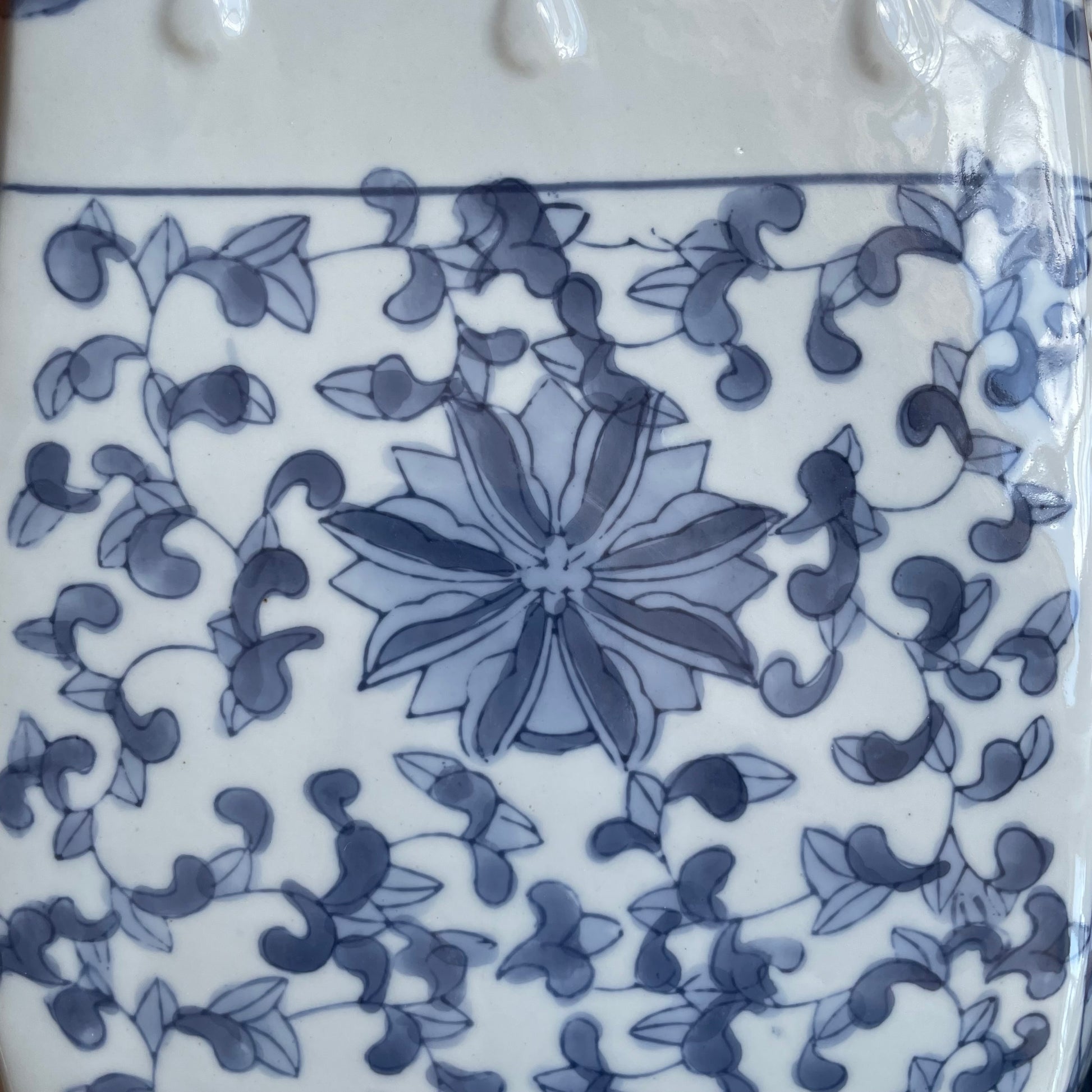- Pattern: Hand-painted blue floral motifs and geometric detailing