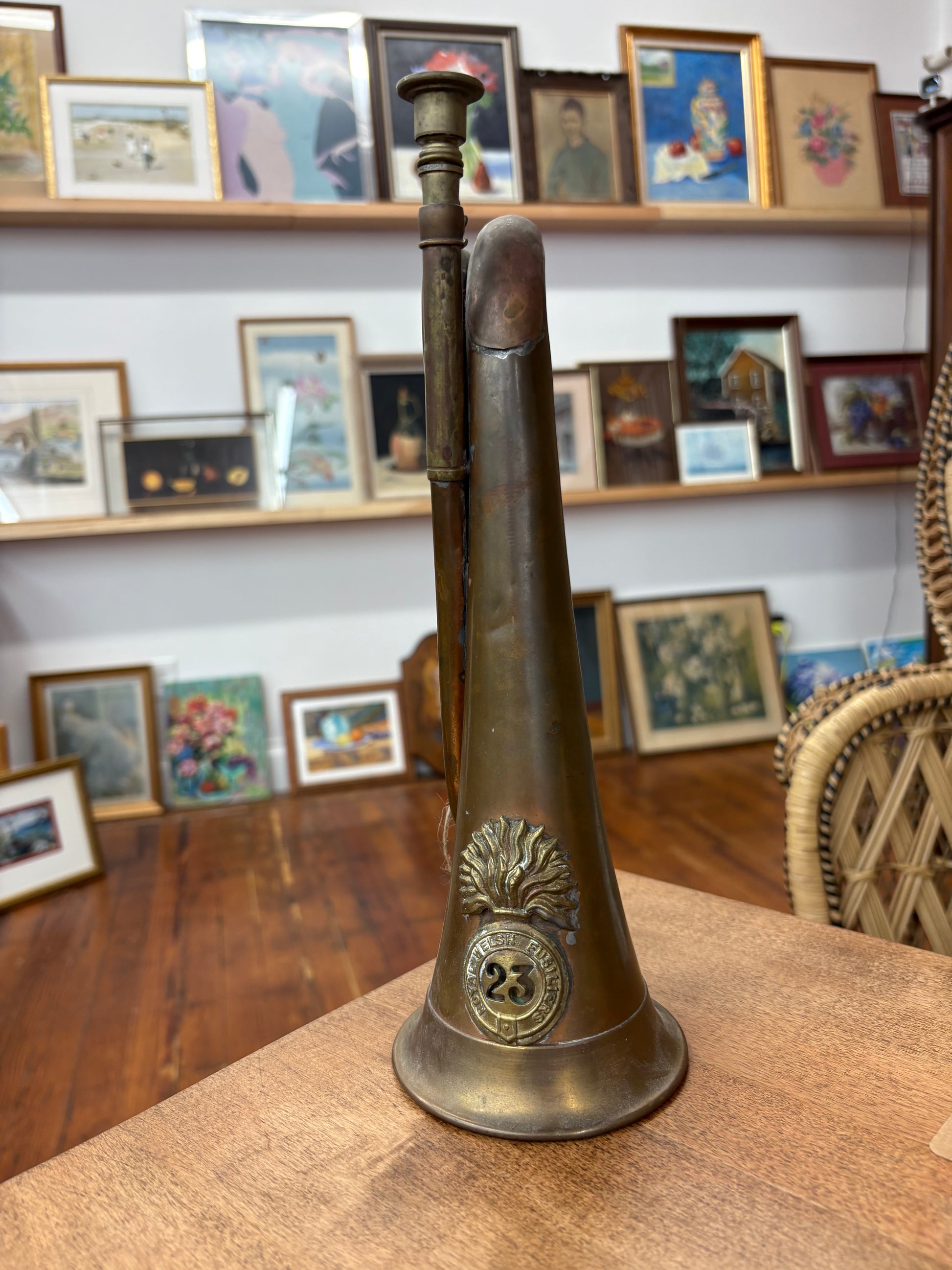 WWI Antique Royal Welsh Fusiliers Bugle – Copper & Brass “23” Regimental Horn, 12″