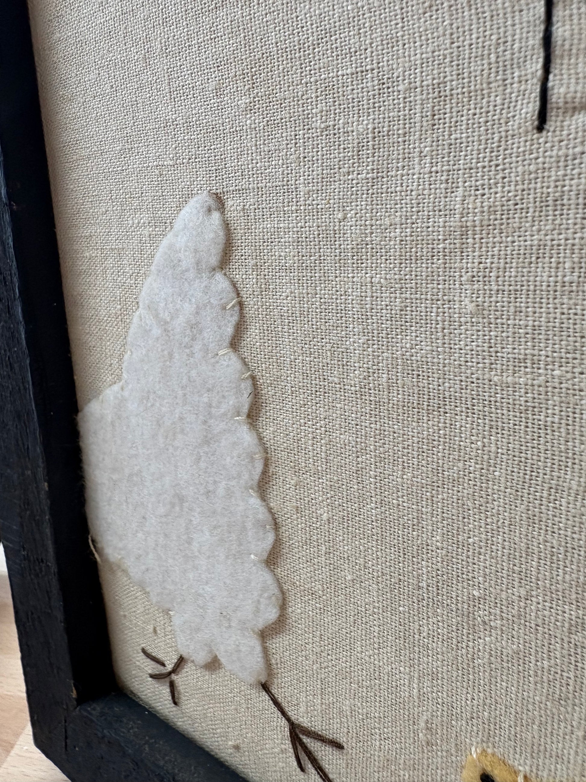 - Technique: Hand embroidery and felt appliqué on natural linen