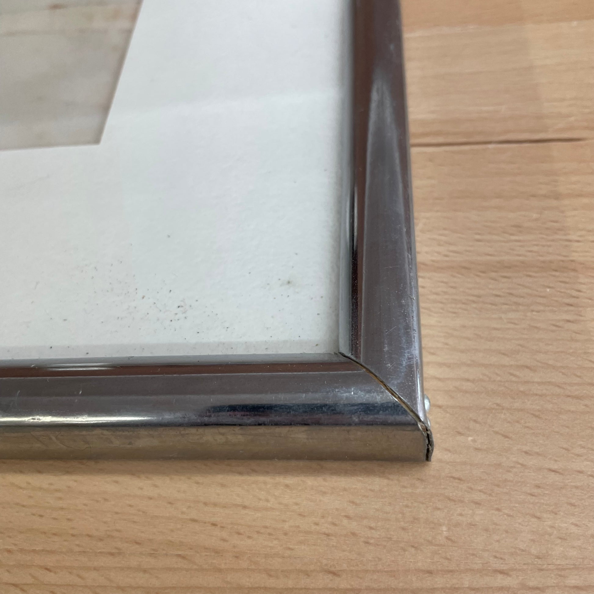 Frame: Chrome metal frame with white mat