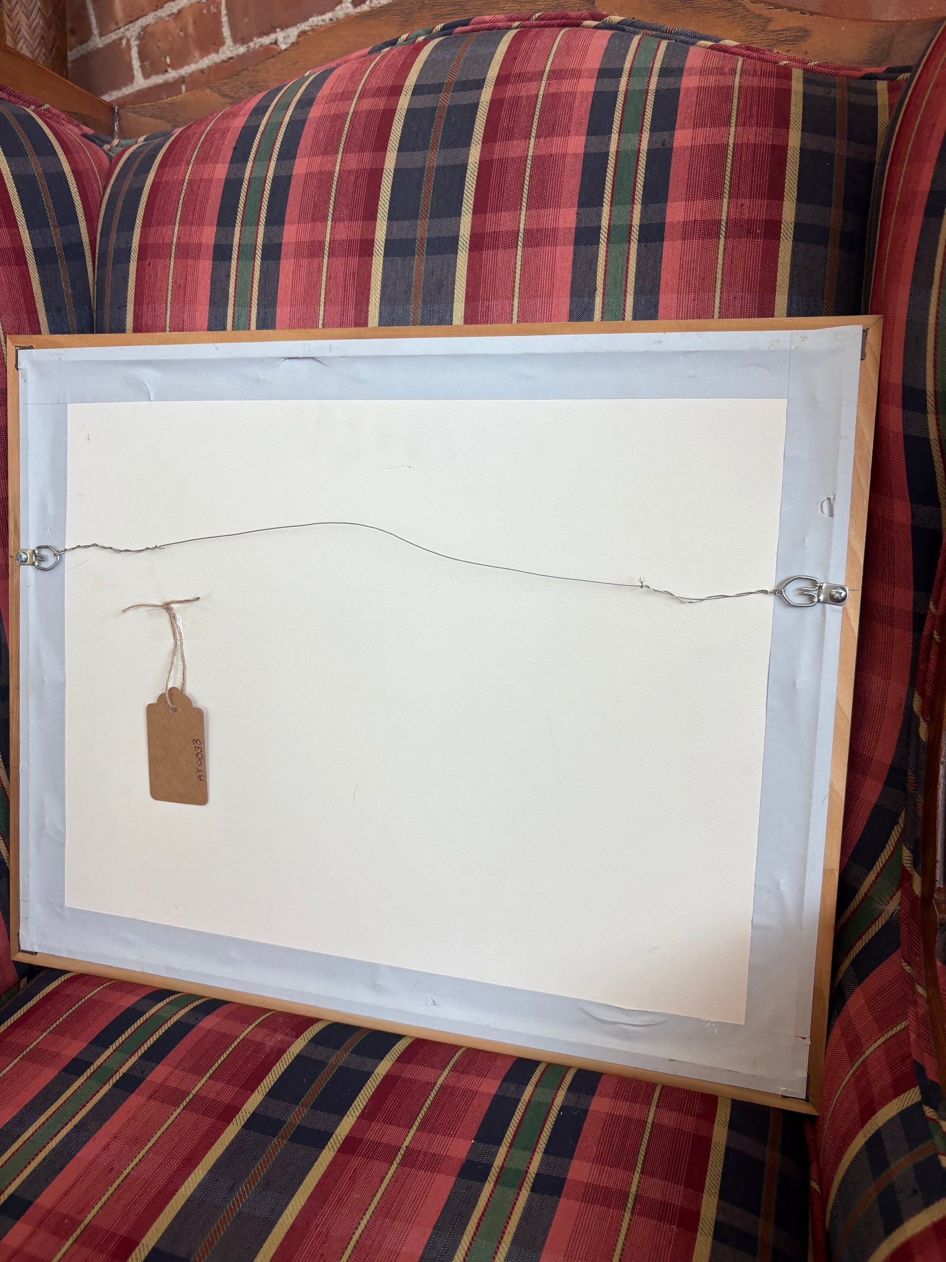 - Frame: Gold-tone vintage wood frame with mat