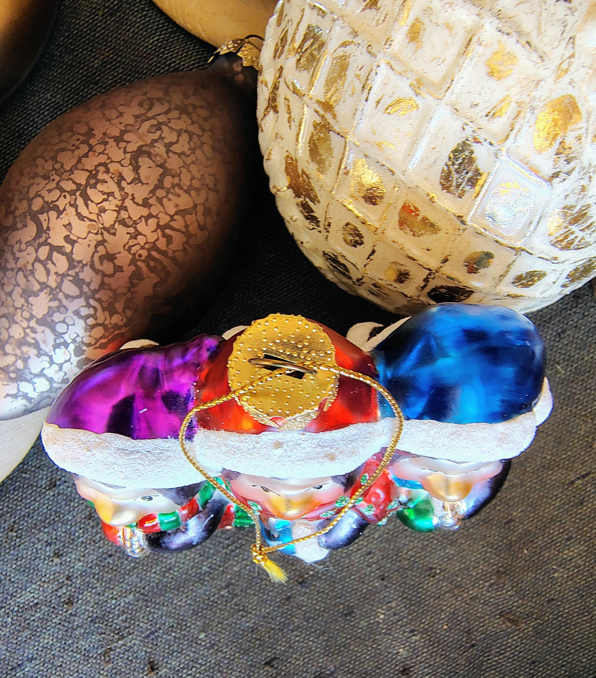 Add playful holiday charm to your tree with this vintage glass Christmas ornament featuring three cheerful penguins bundled in colorful scarves and hats as they ski together through the snow. Crafted with shimmering metallic paint and glitter accents, this glass penguin ornament captures the joy and nostalgia of classic vintage Christmas decorations. The warm gold, red, and green tones pair beautifully with both traditional and modern holiday color palettes. Perfect for collectors of glass animal ornaments or anyone who loves a touch of whimsy on their tree, this piece makes a delightful addition to your holiday collection or a thoughtful Christmas gift for ornament lovers.
