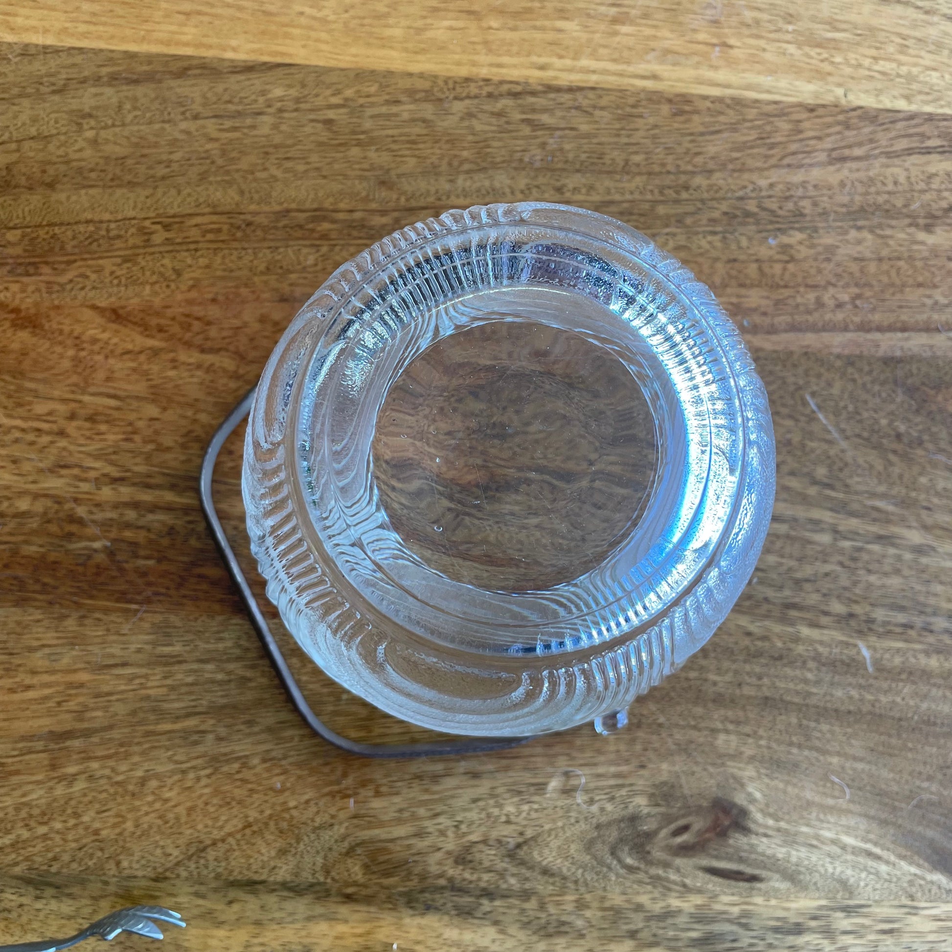 - Material: Pressed glass, metal handle, silver-tone tongs