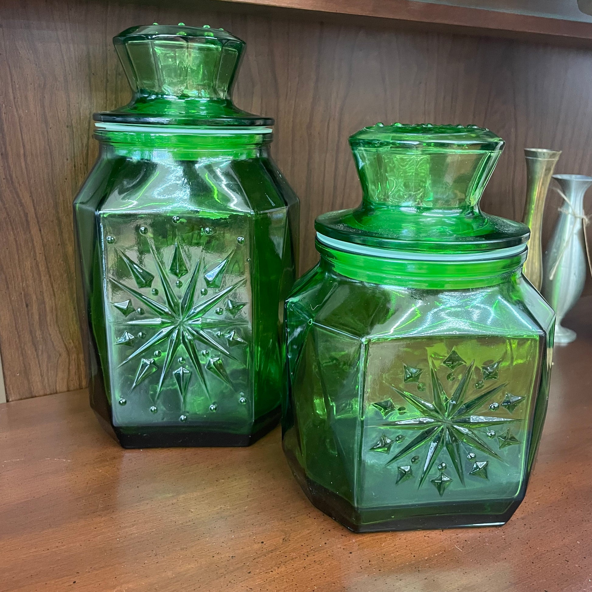 Vintage Wheaton Green Glass Canisters – Set of 2 with Starburst Design