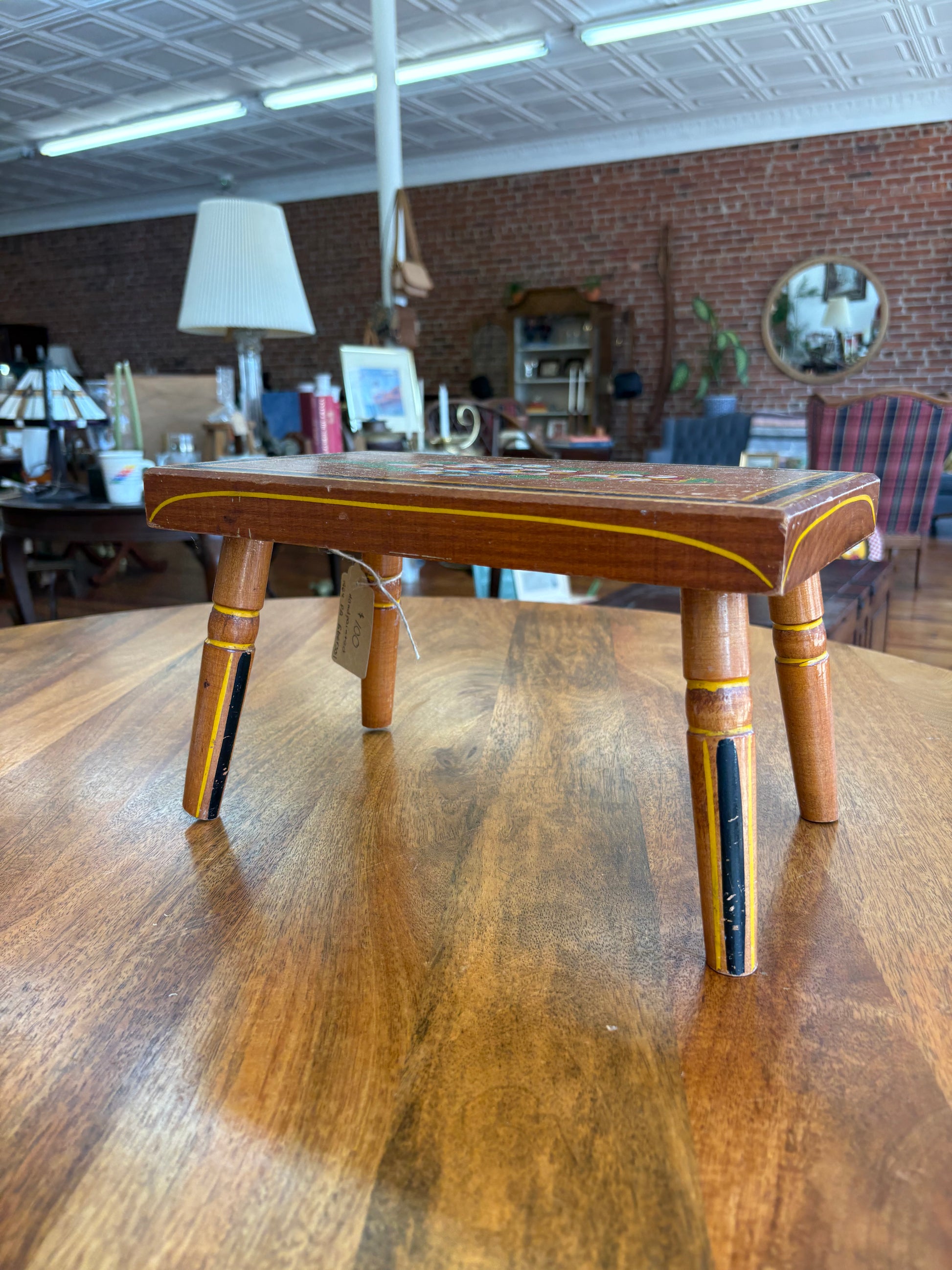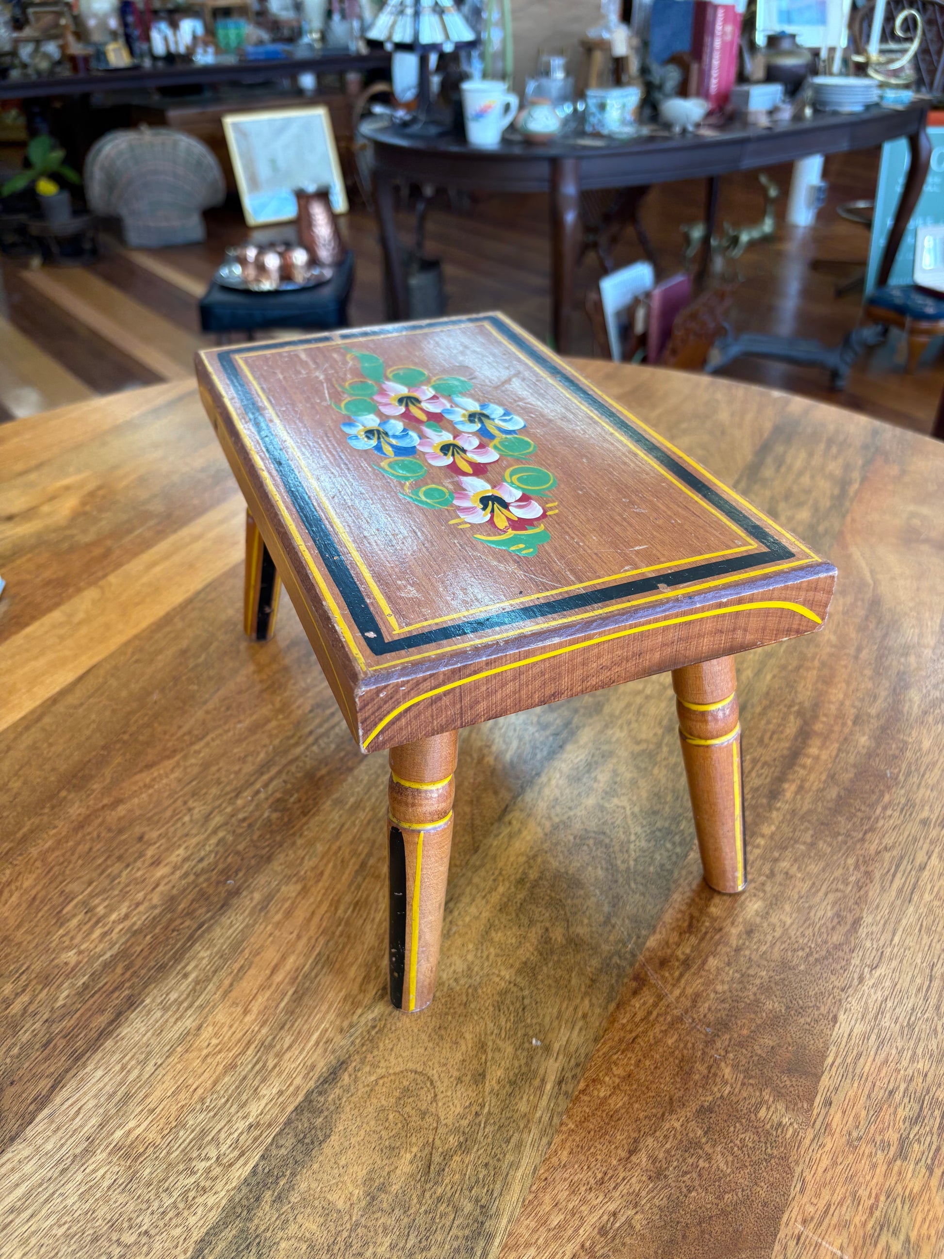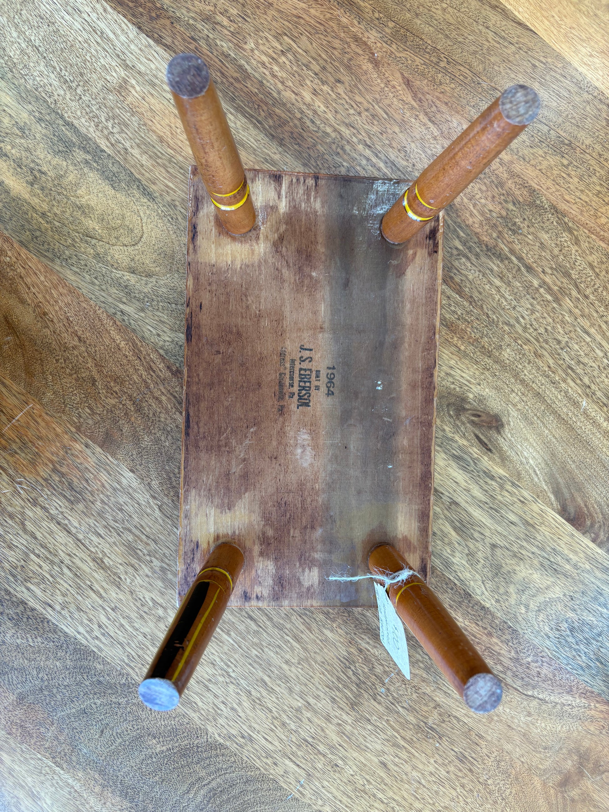 1966 J.S. Ebersol Hand-Painted Folk Art Footstool – Pennsylvania Dutch, 14″