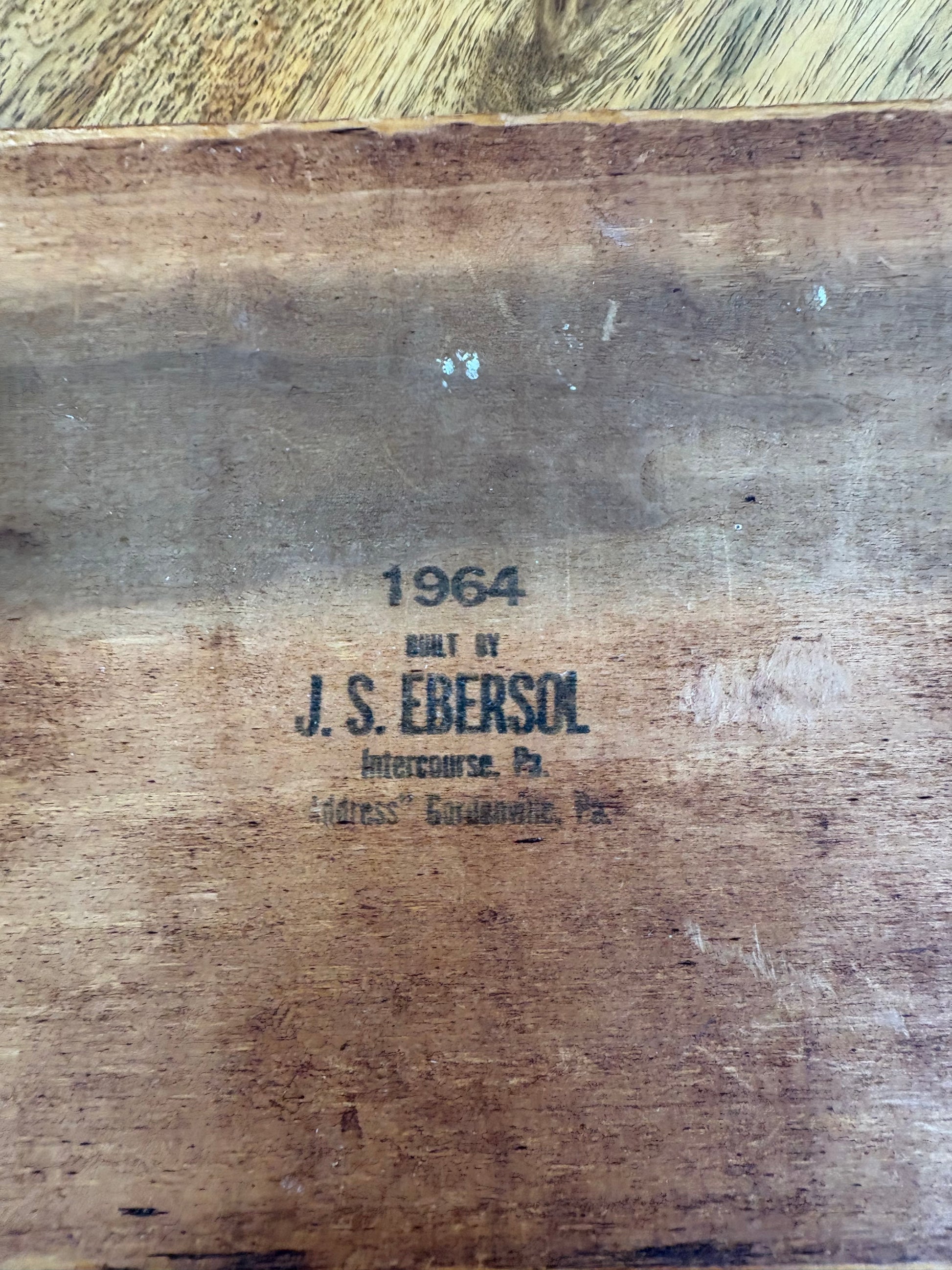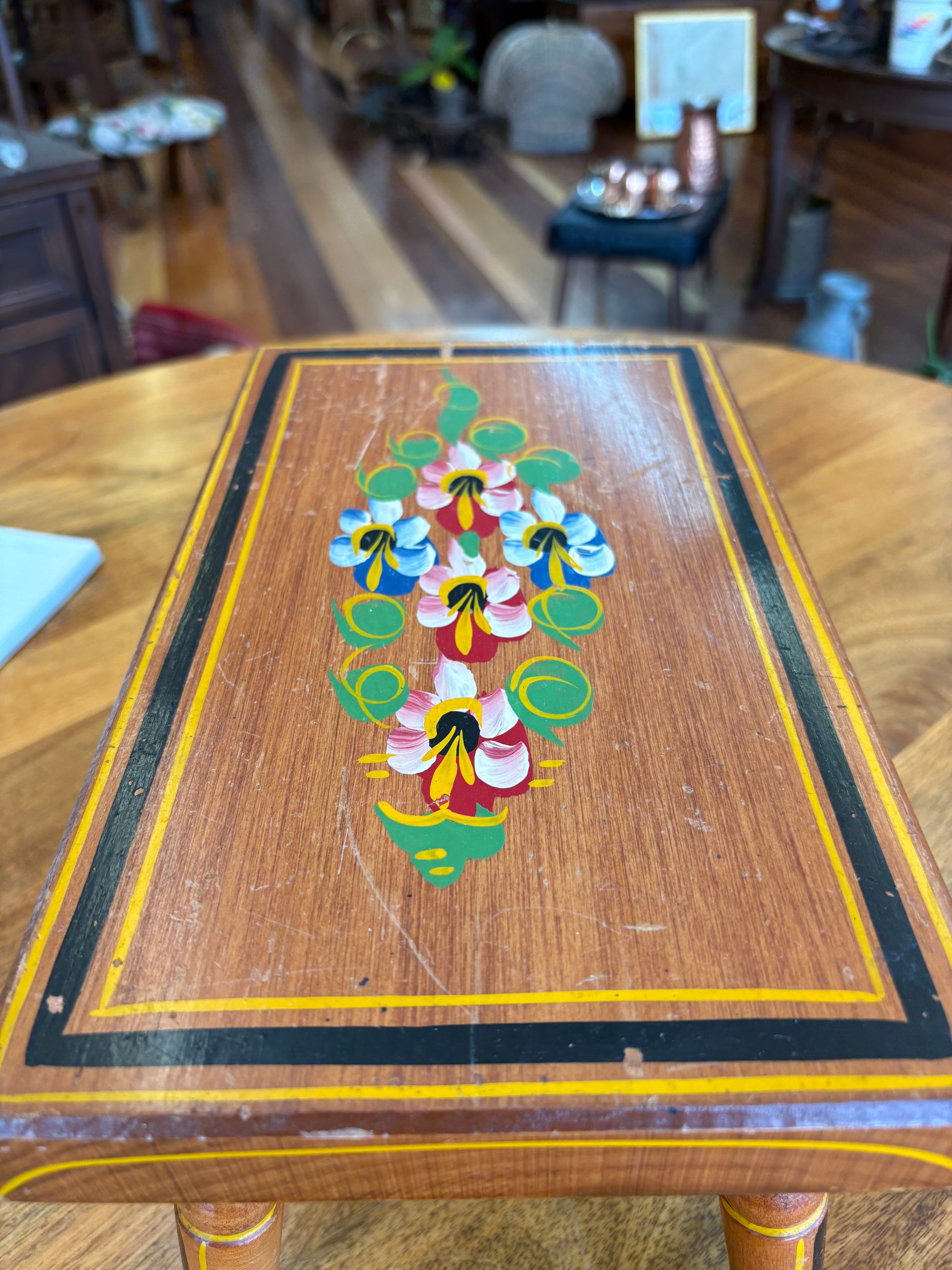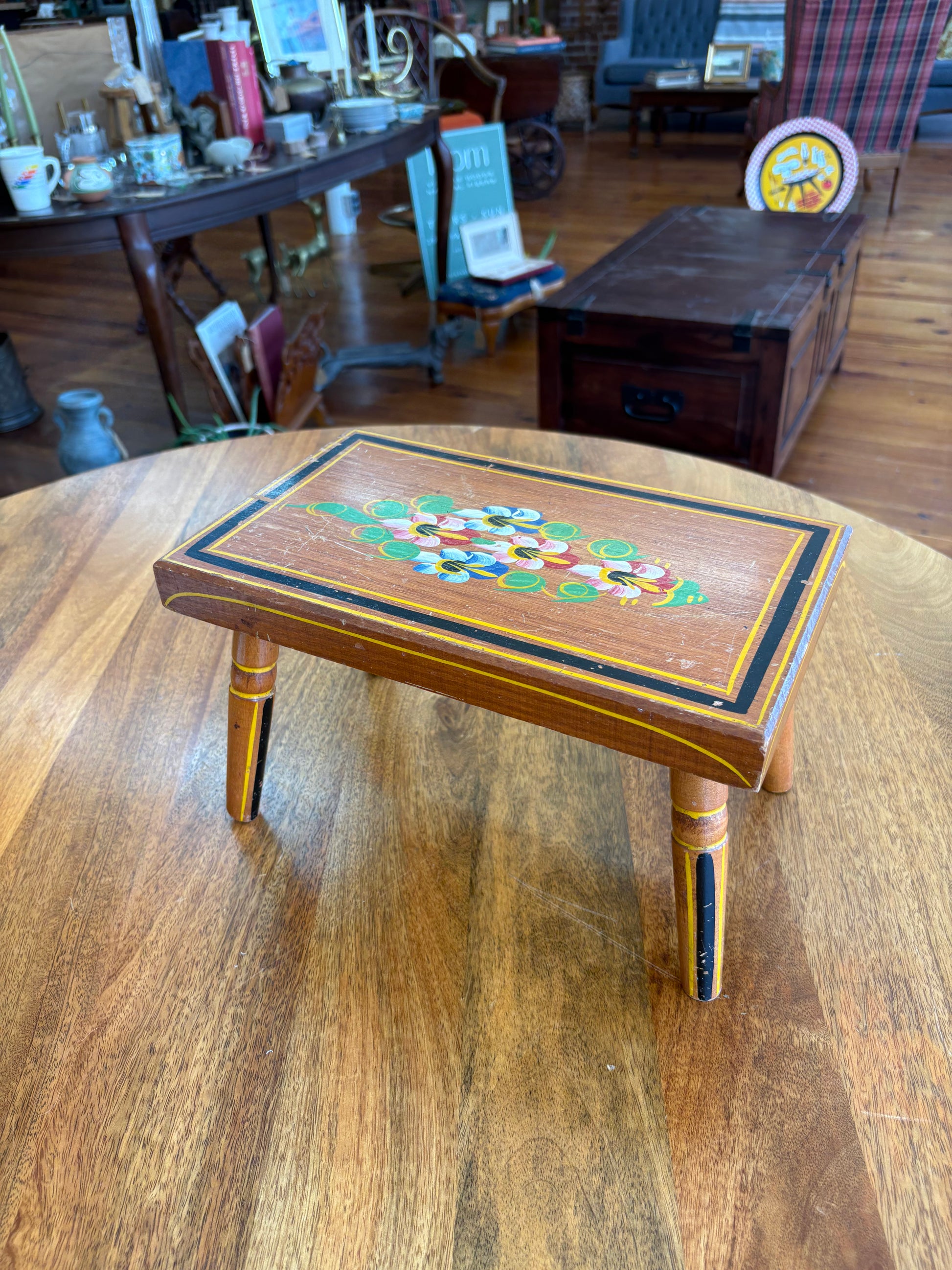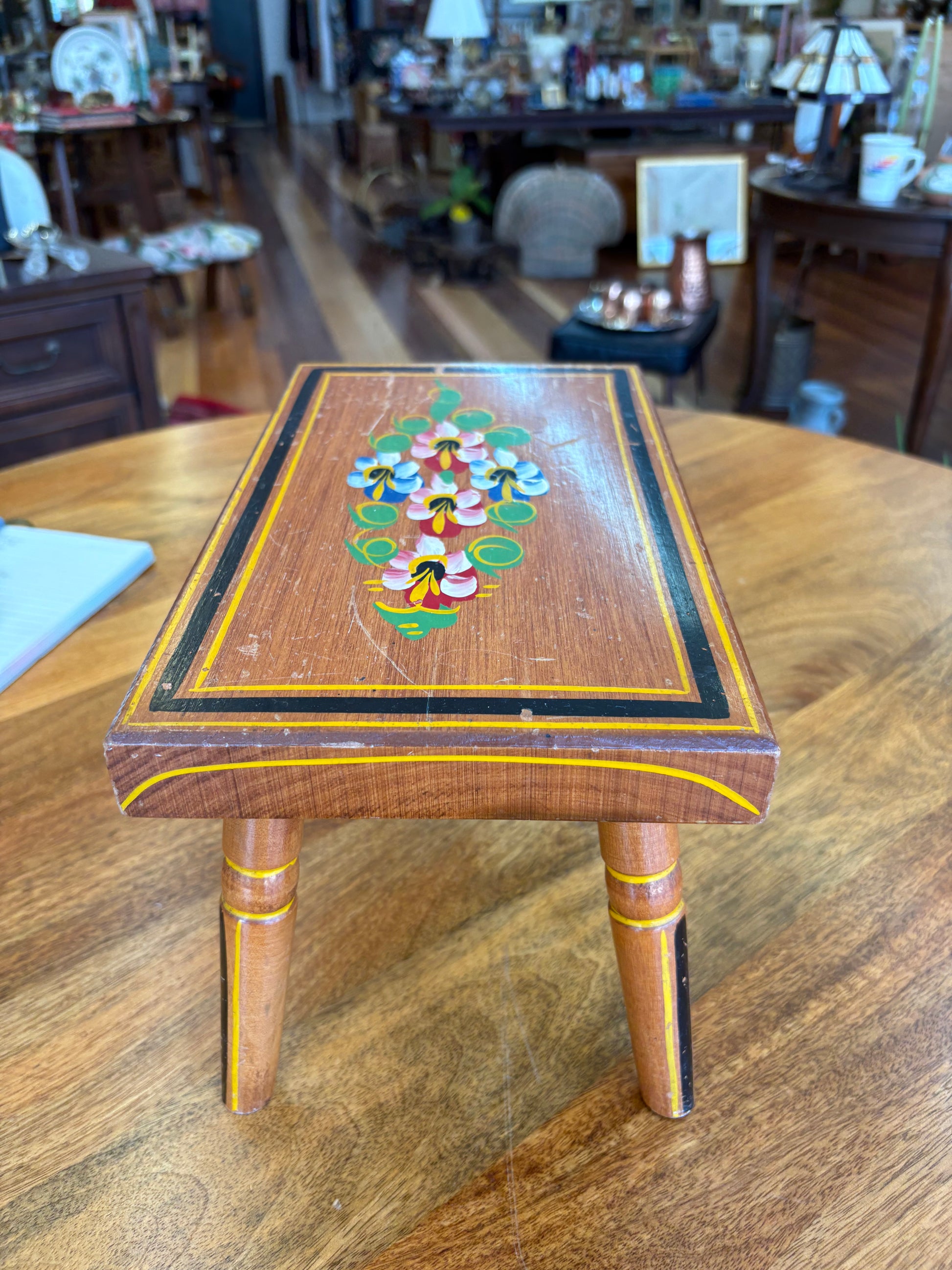 1966 J.S. Ebersol Hand-Painted Folk Art Footstool – Pennsylvania Dutch, 14″