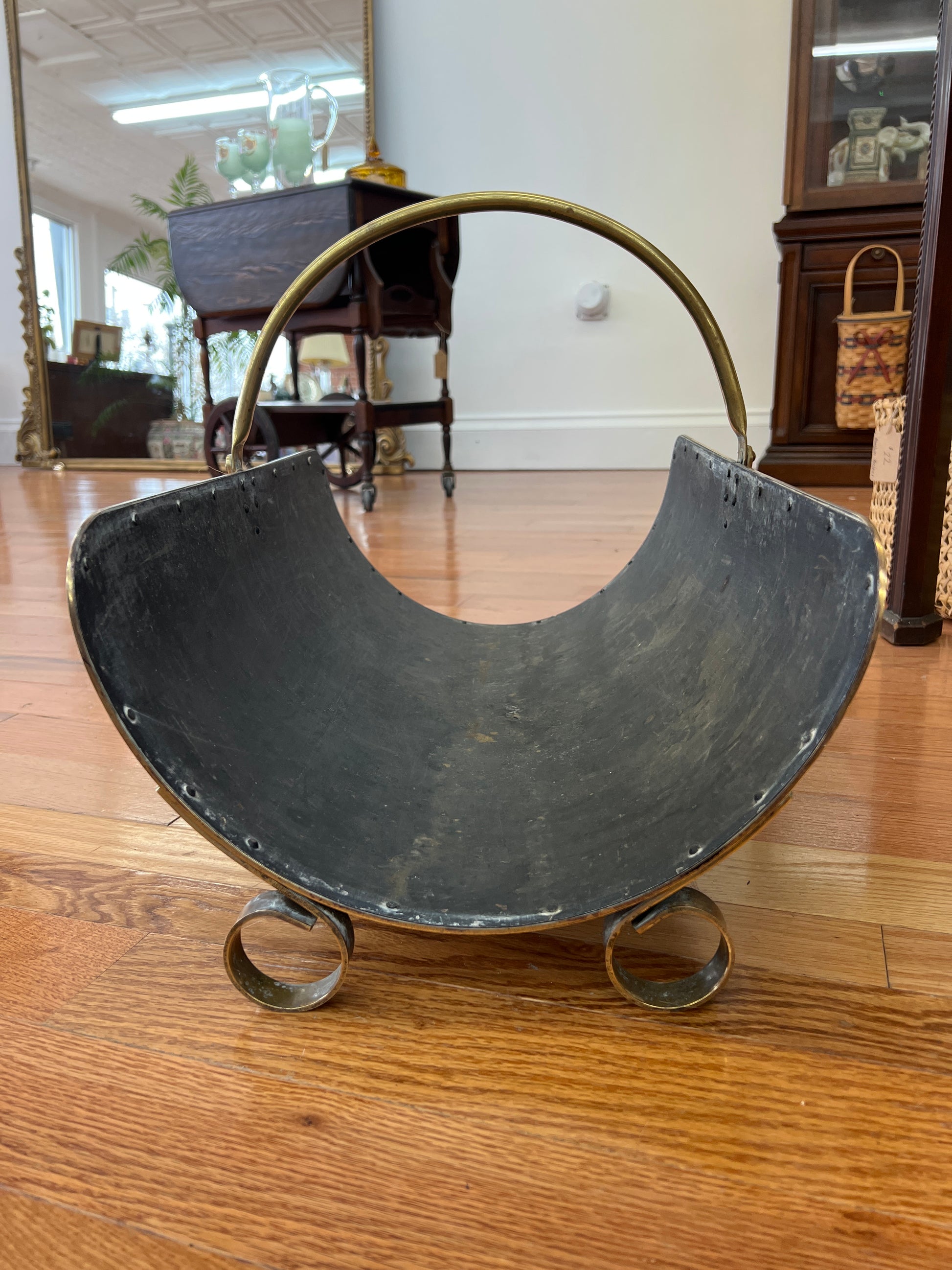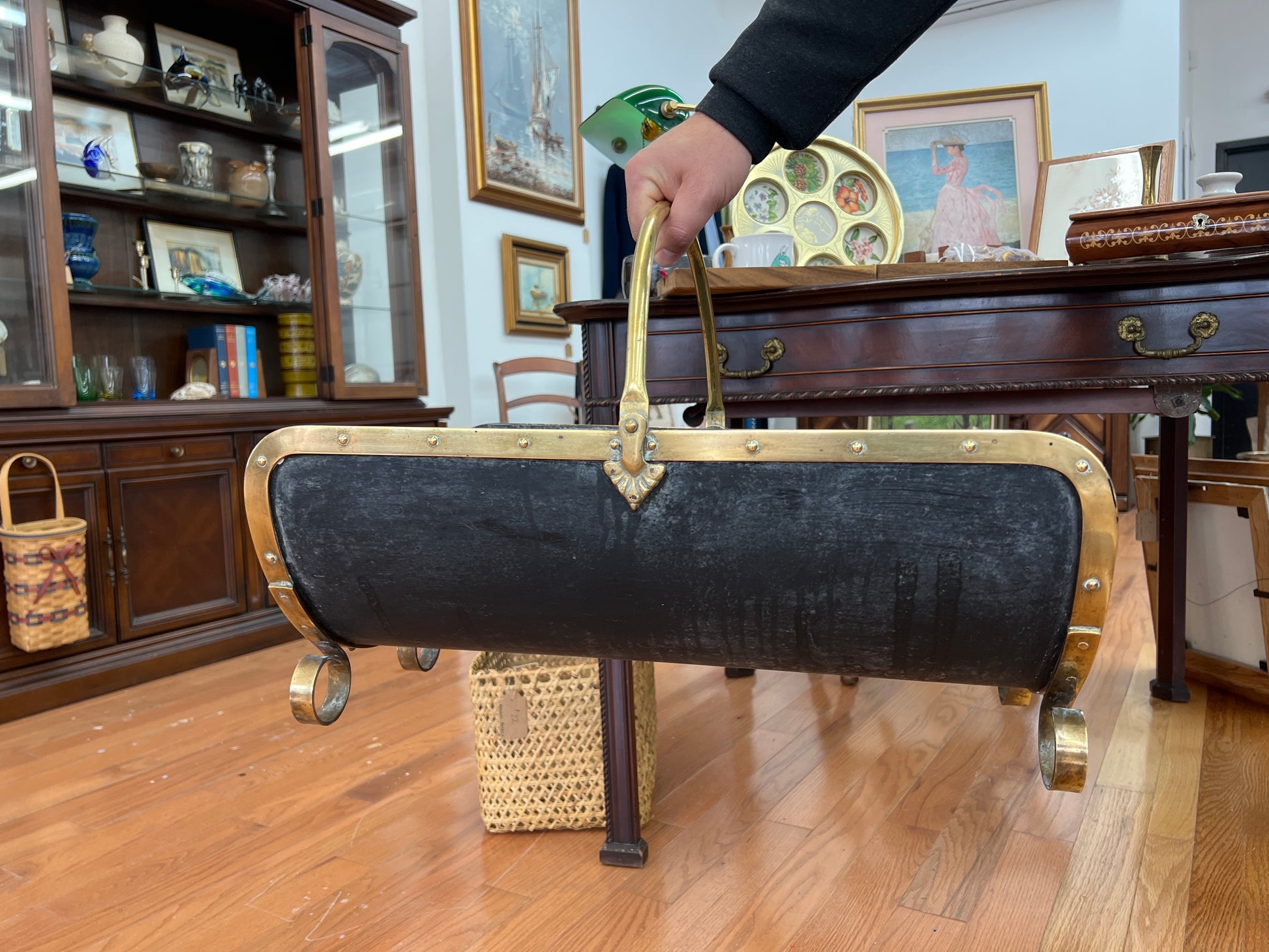 Antique Brass & Black Metal Footed Fireplace Log Holder