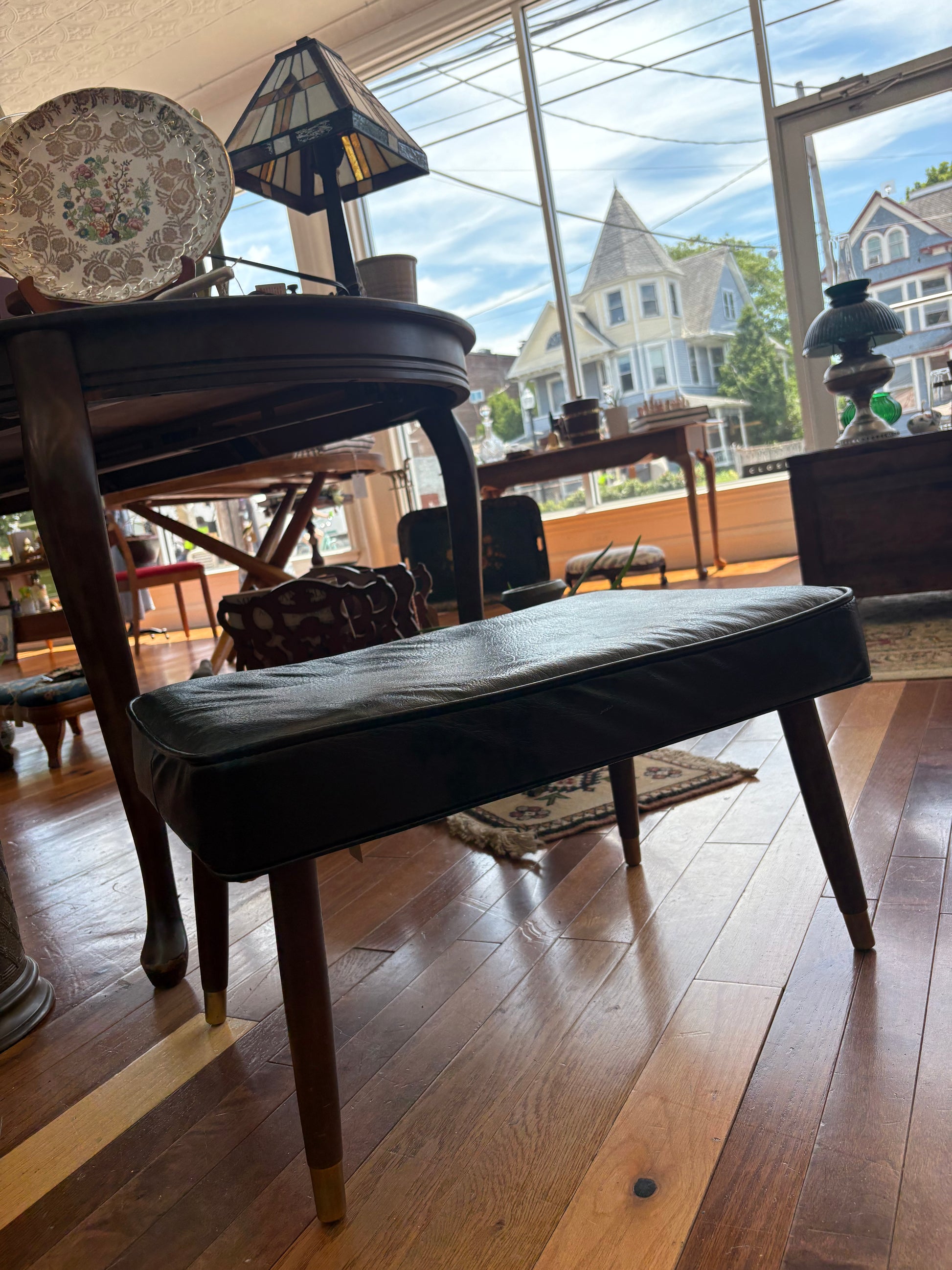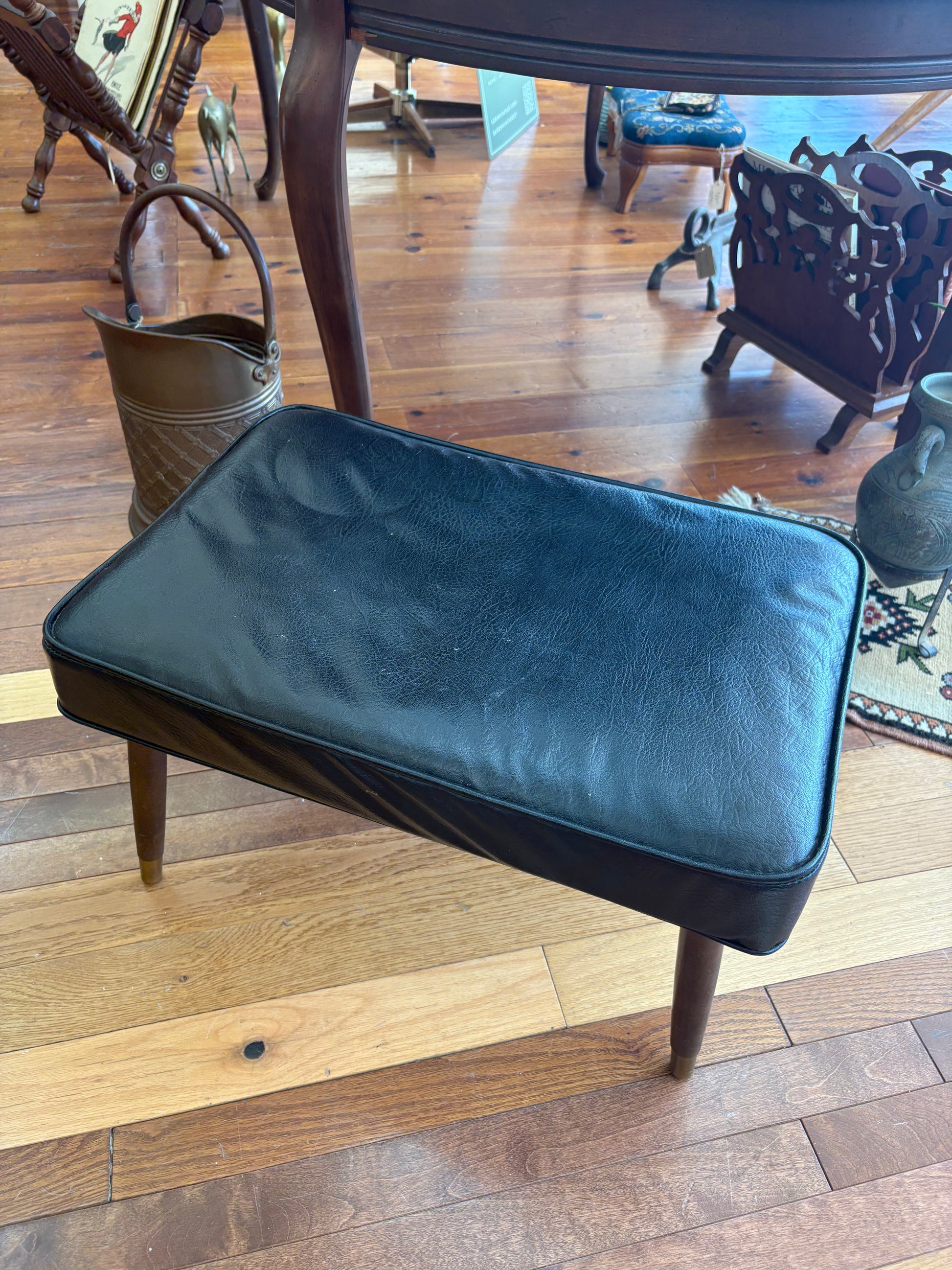 The black vinyl top is easy to clean and surprisingly plush, while the tapered legs give it a true 1950s–60s MCM profile. A versatile piece that works in any room needing a pop of vintage character and utility.