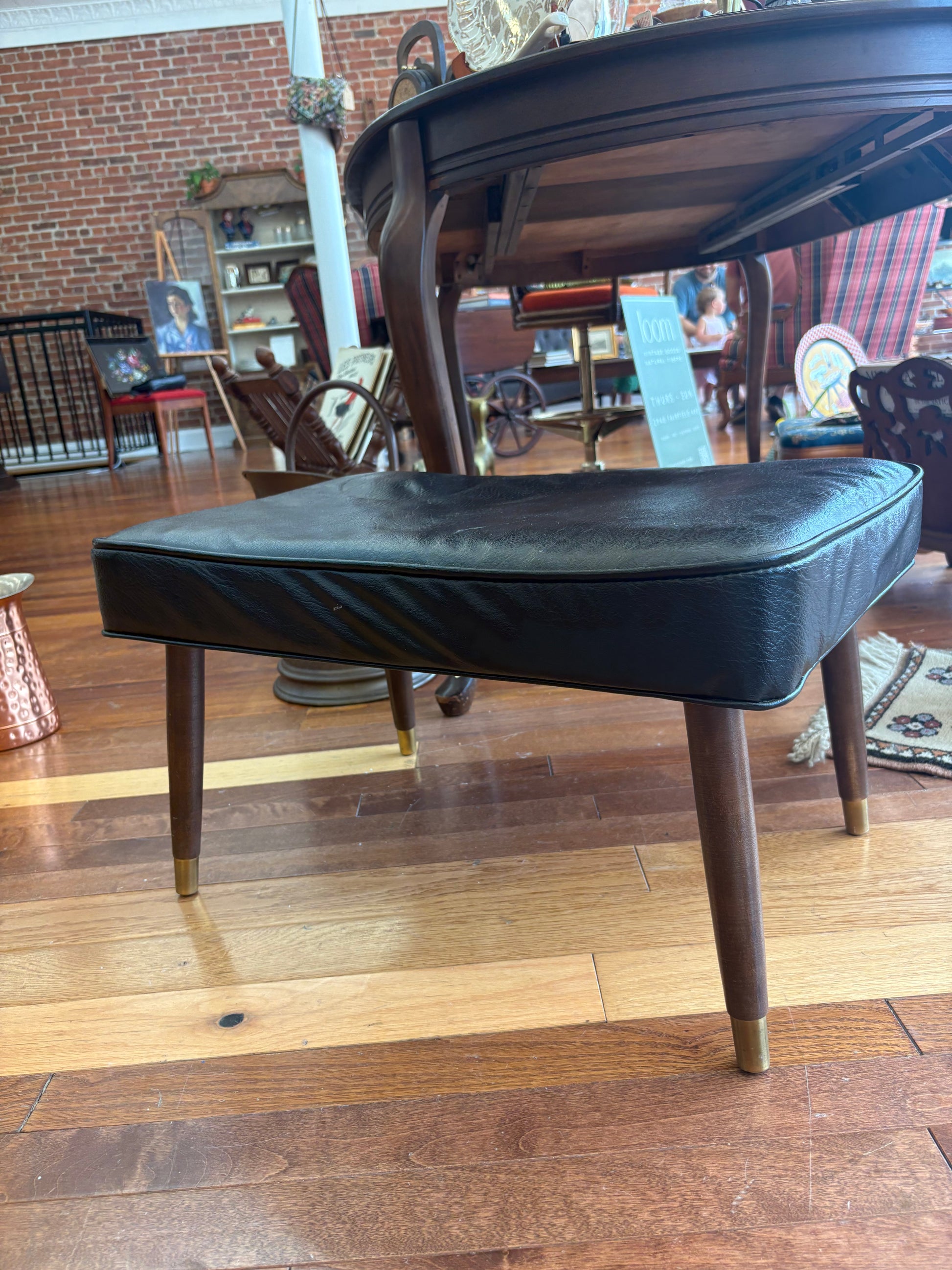 Mid-Century Black Vinyl Footstool – Crawford No. 3994 with Brass Leg Detail