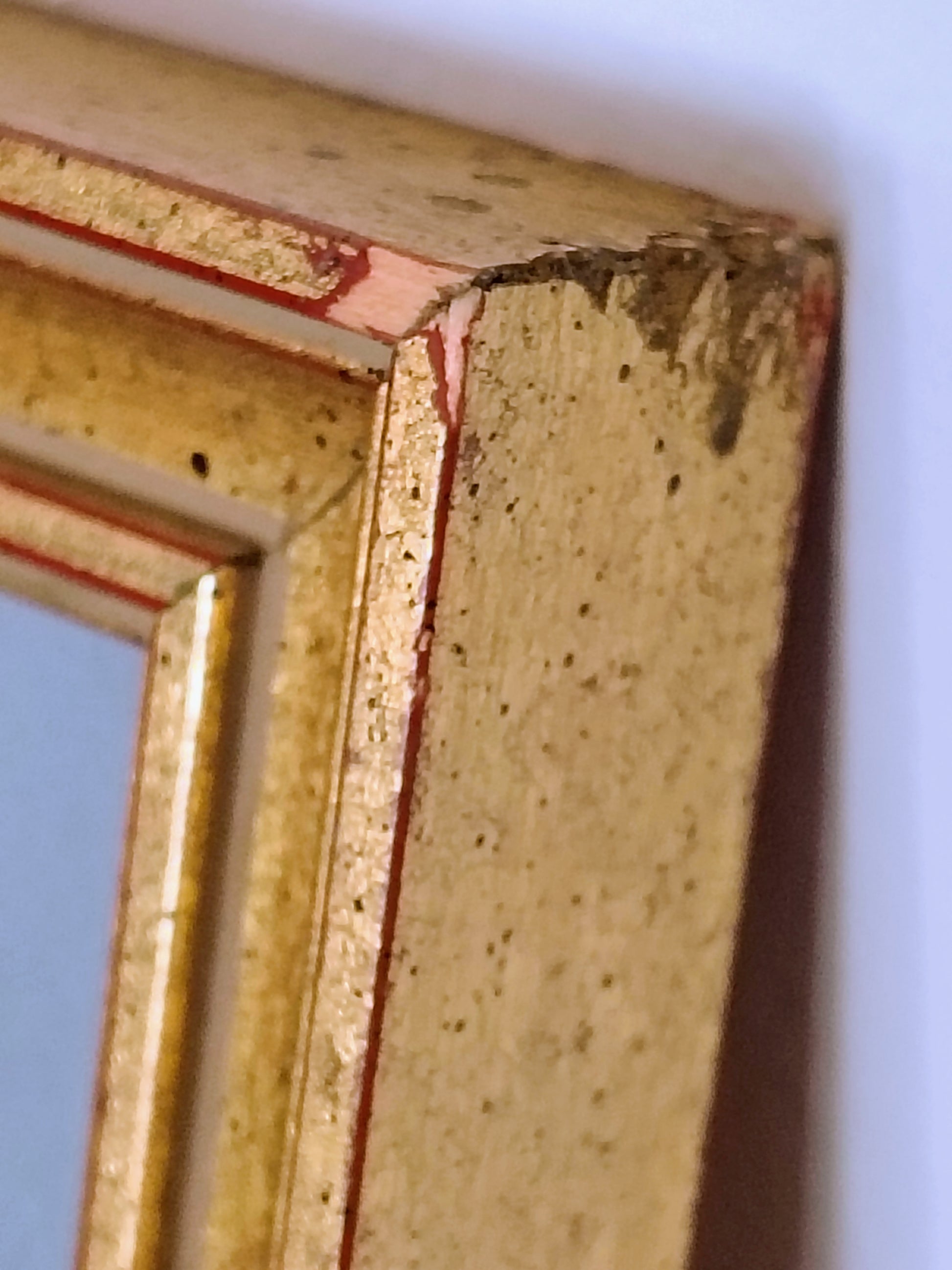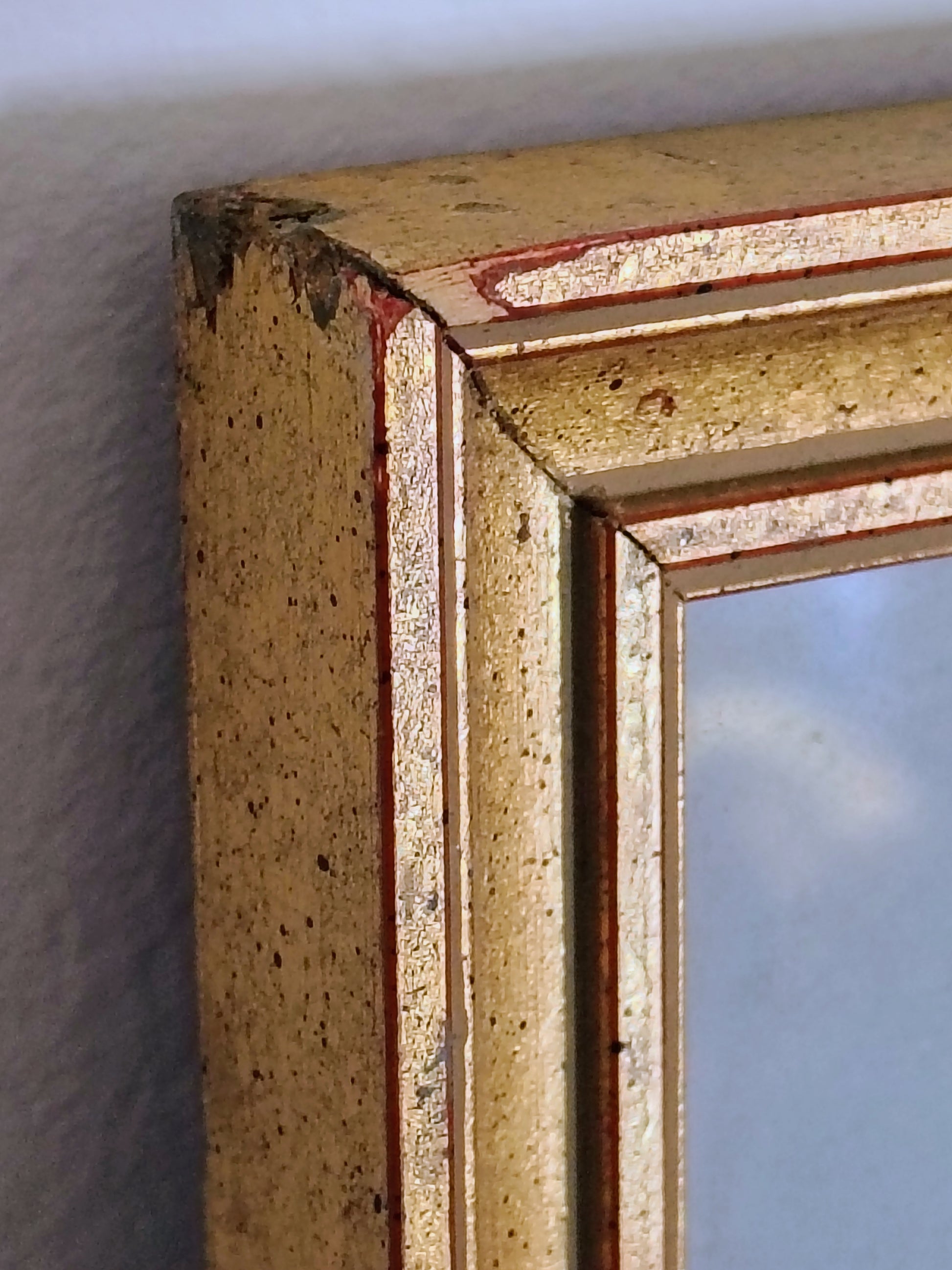 Frame: Vintage gold wood with blue and red matting
