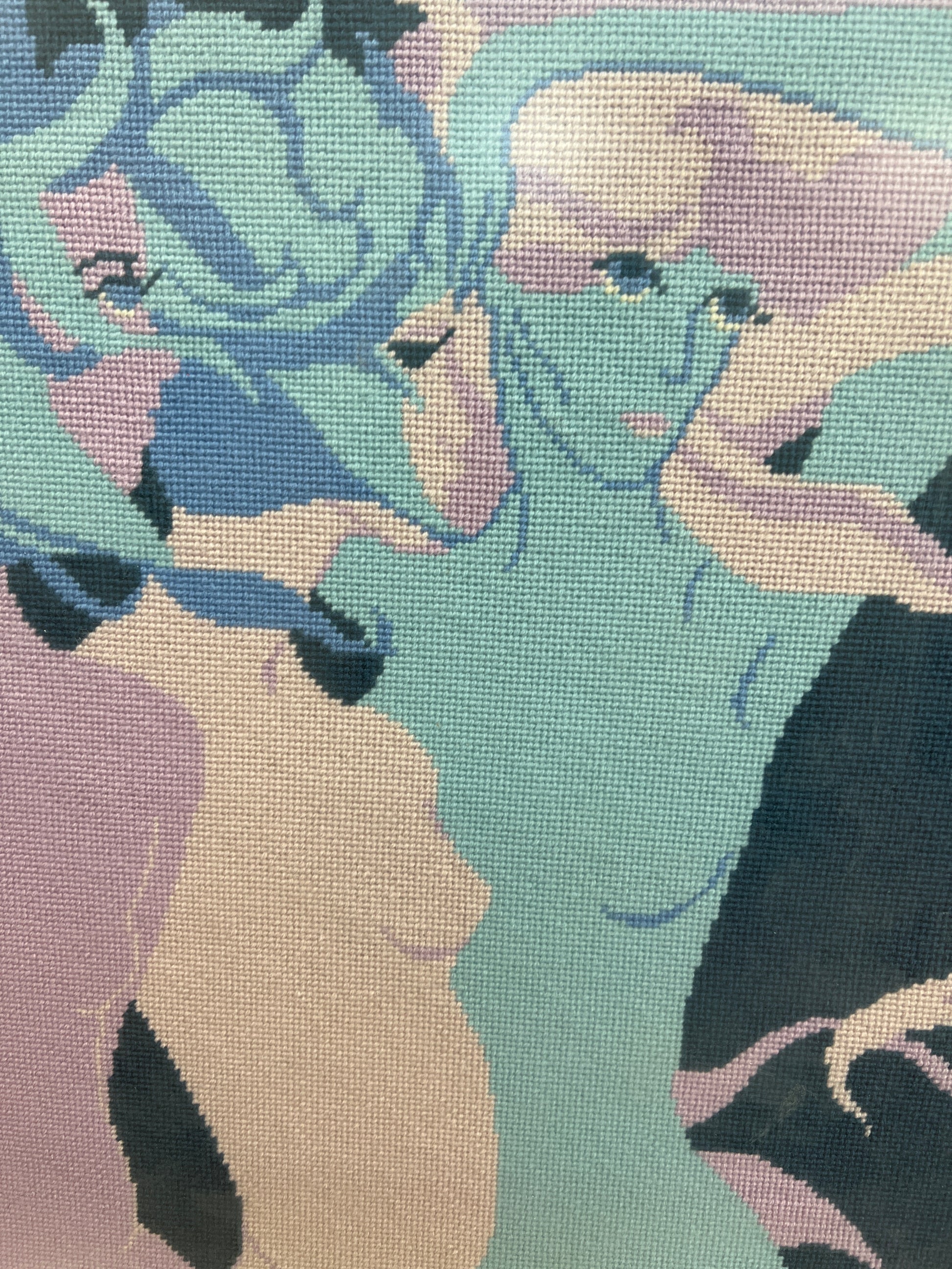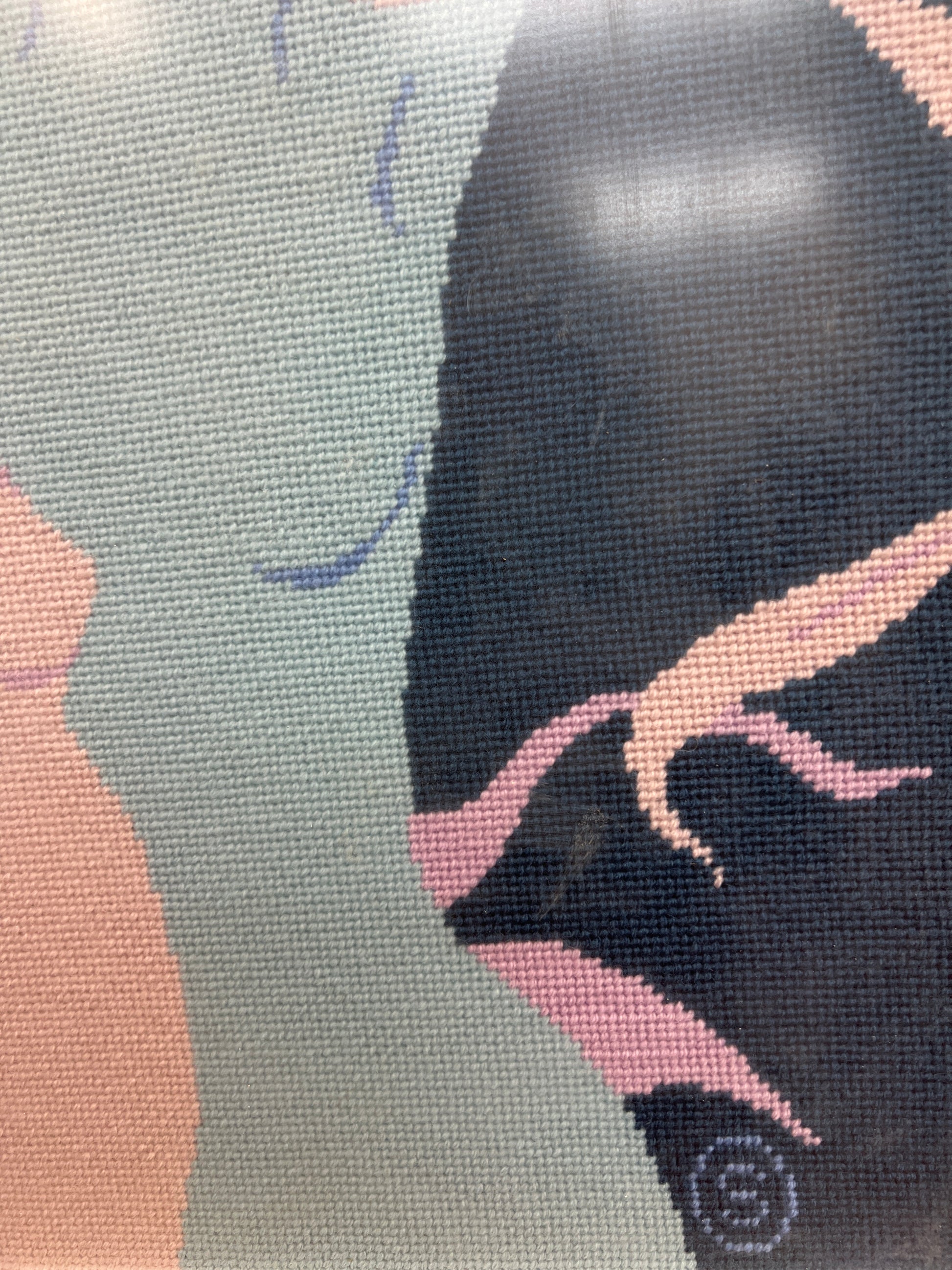 Medium: Hand-stitched needlepoint (crewel)