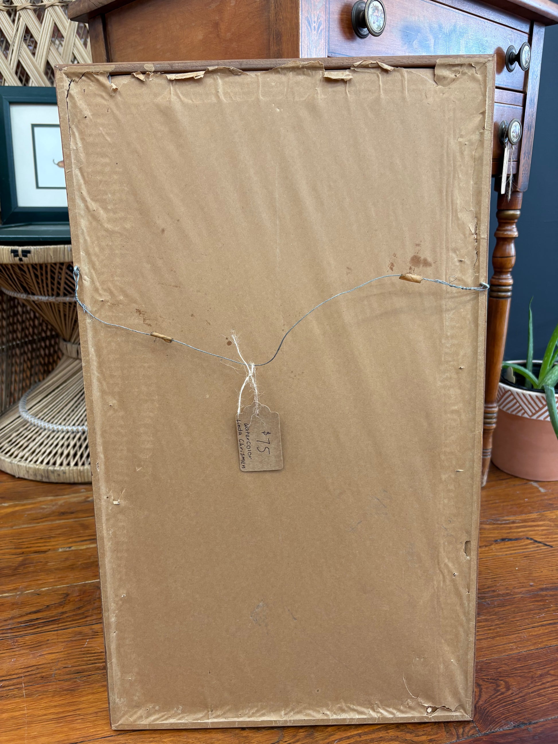 Good vintage condition. Artwork is clean with no visible foxing or water damage. Frame has a small chip in the upper-right corner—priced accordingly.