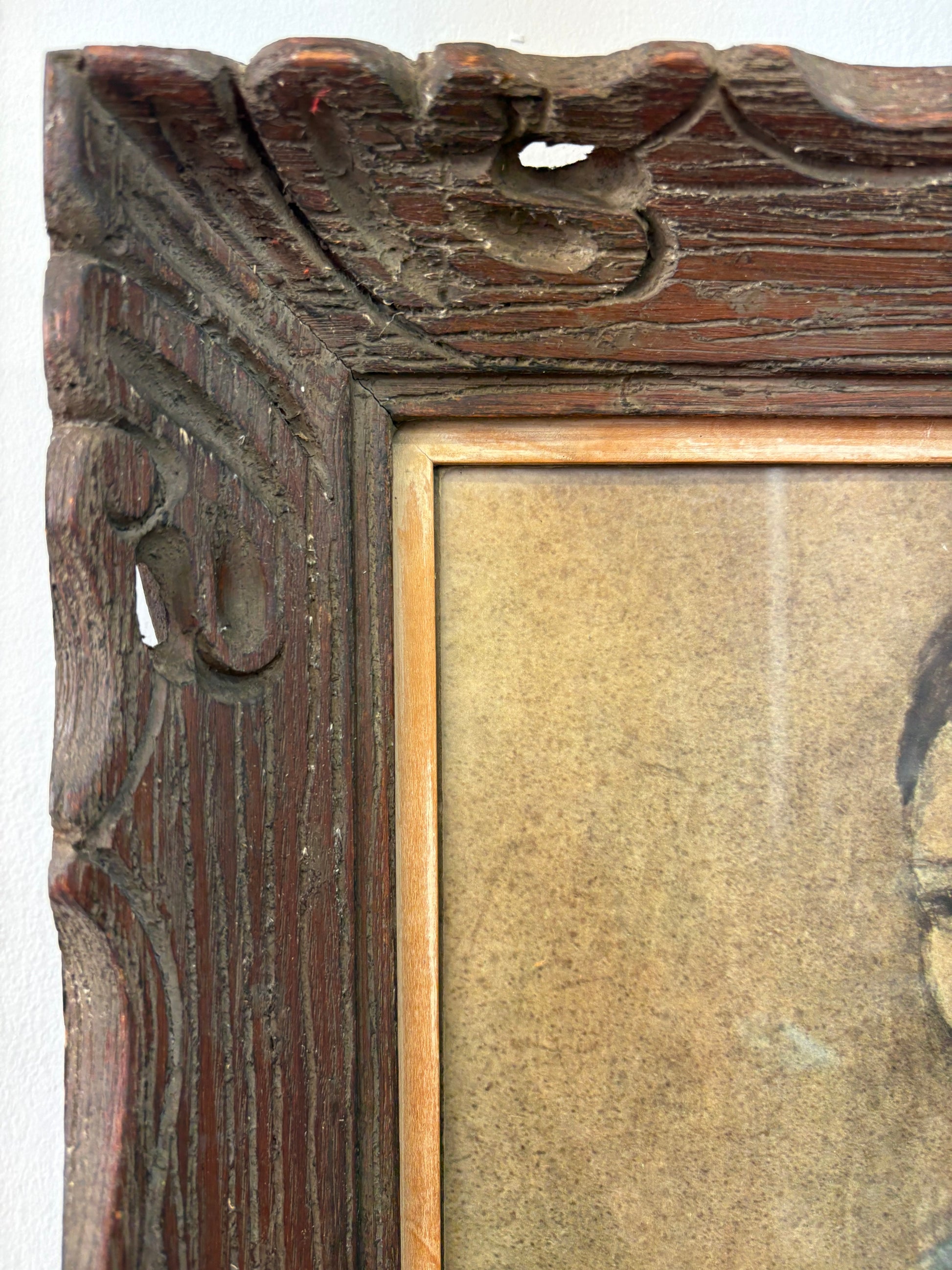 - Frame: Rustic carved oak with warm, time-softened patina; ready to hang