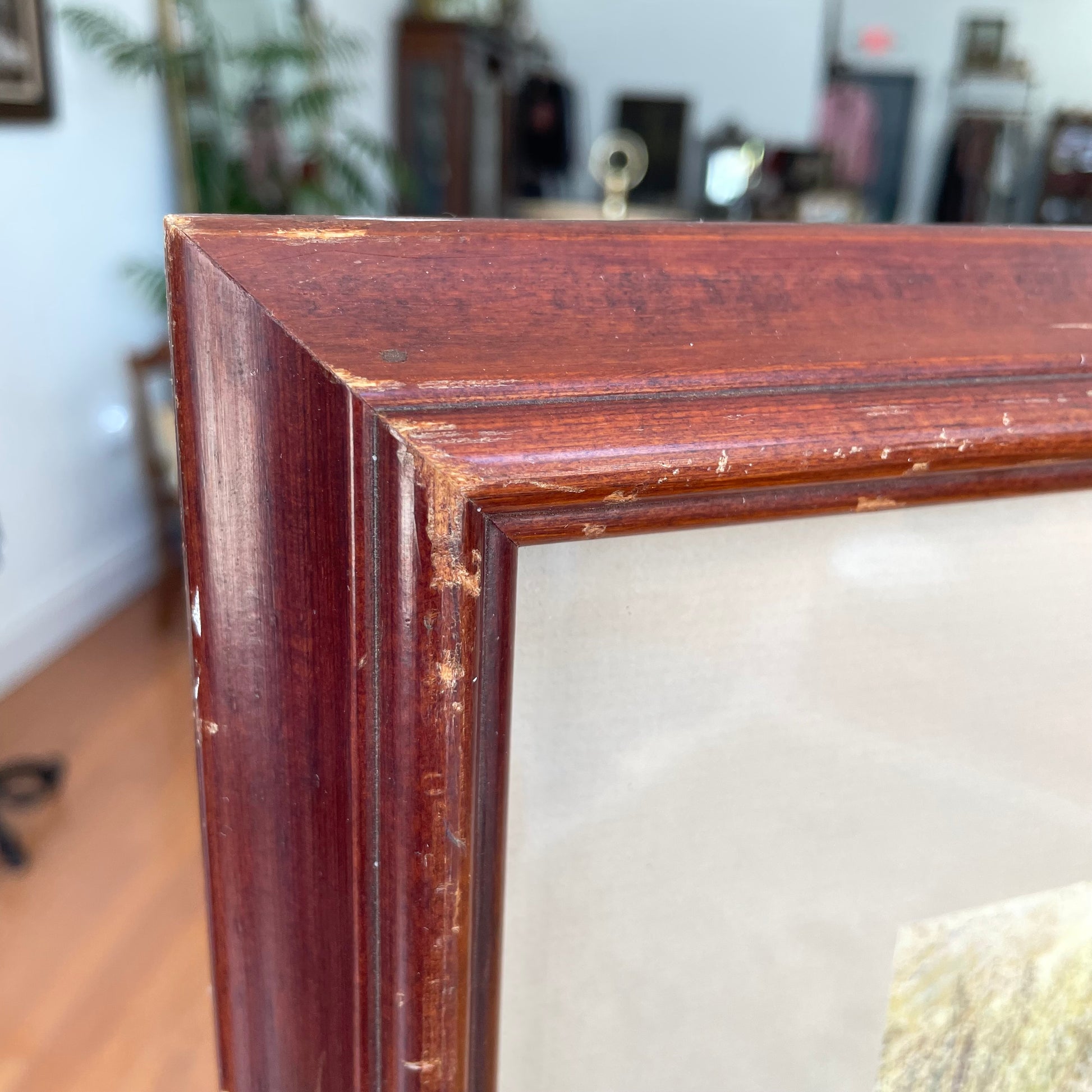 Frame shows some minor wear and surface scratches typical of age. Artwork is in excellent condition behind glass.