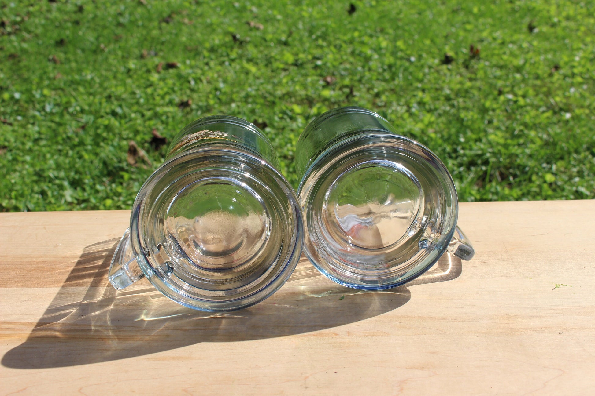 In excellent vintage condition. No chips or cracks. The glass has a blue hue to it.