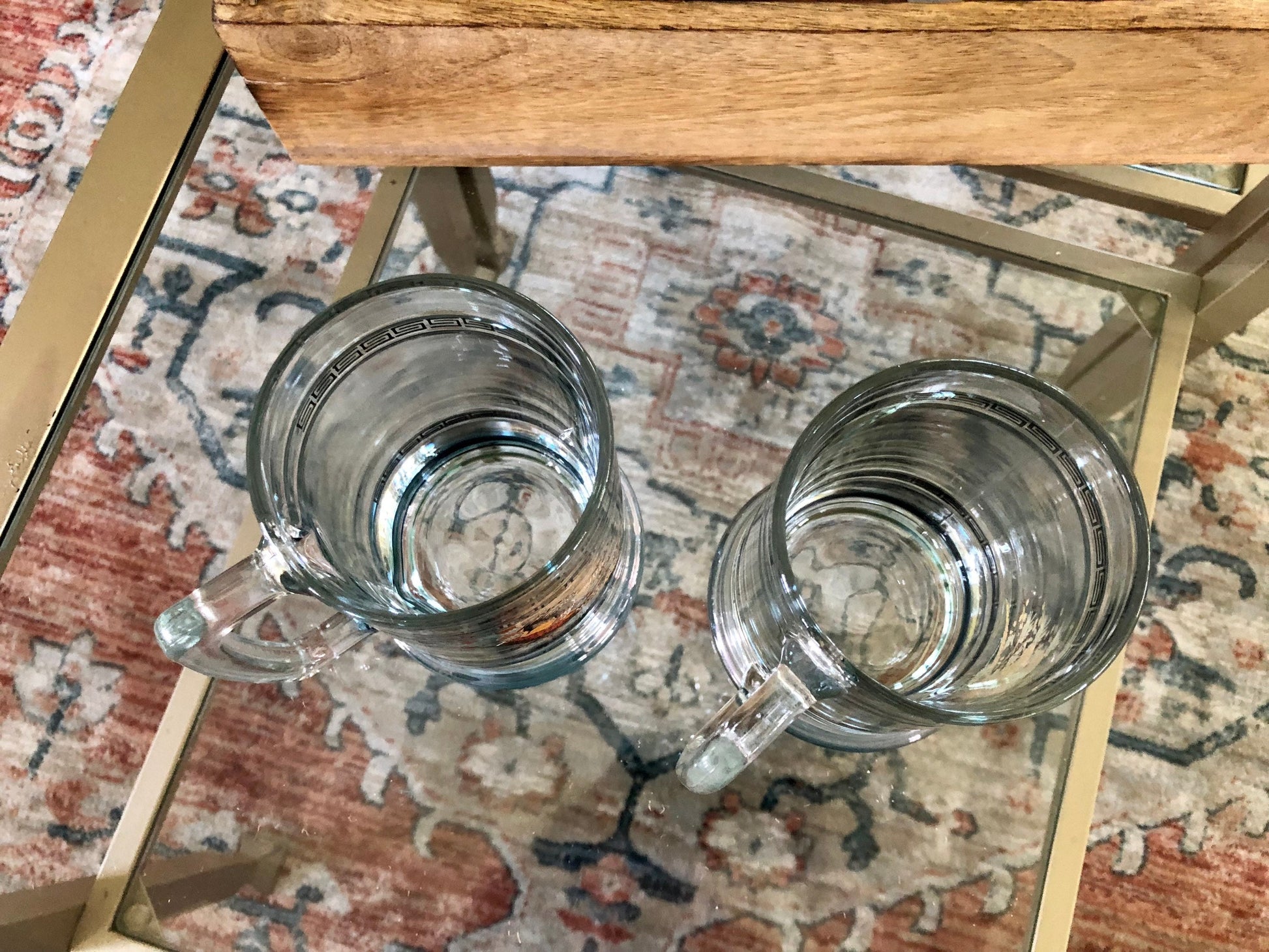 Princess House Glass Pheasant Geese Beer Steins / Retro Glass with Silver Band / Vintage Bar Ware / Beer Cup NIB Hunter Gift