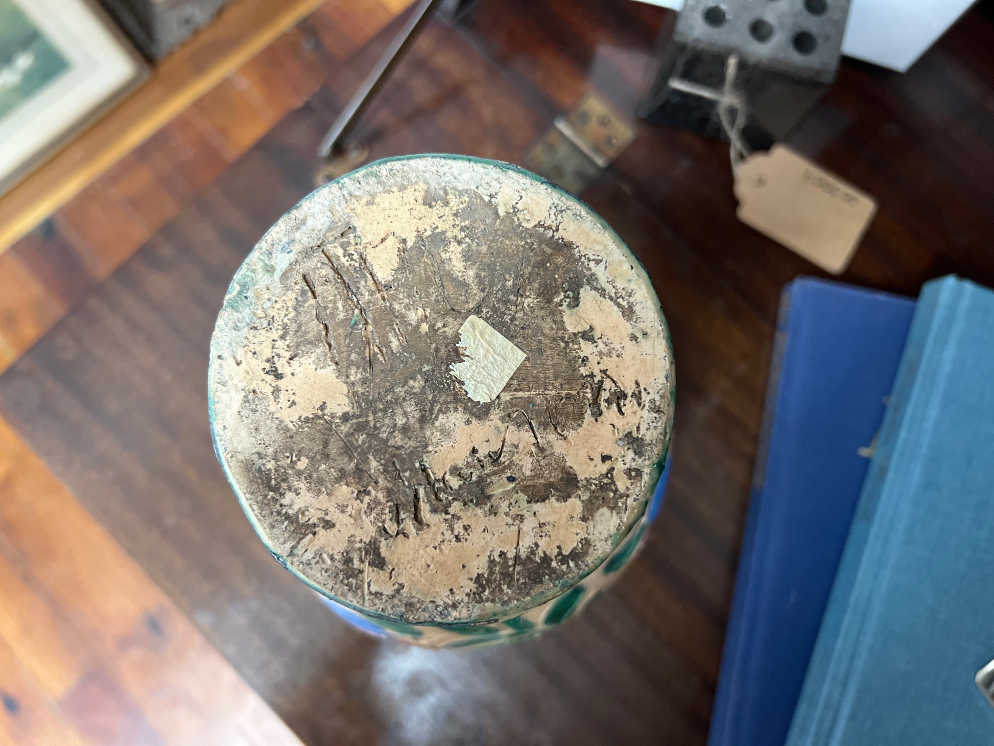 Very good vintage condition—no cracks or repairs. One or two pinpoint glaze pops and light crazing common to tin-glazed pottery; foot ring shows minor shelf wear.