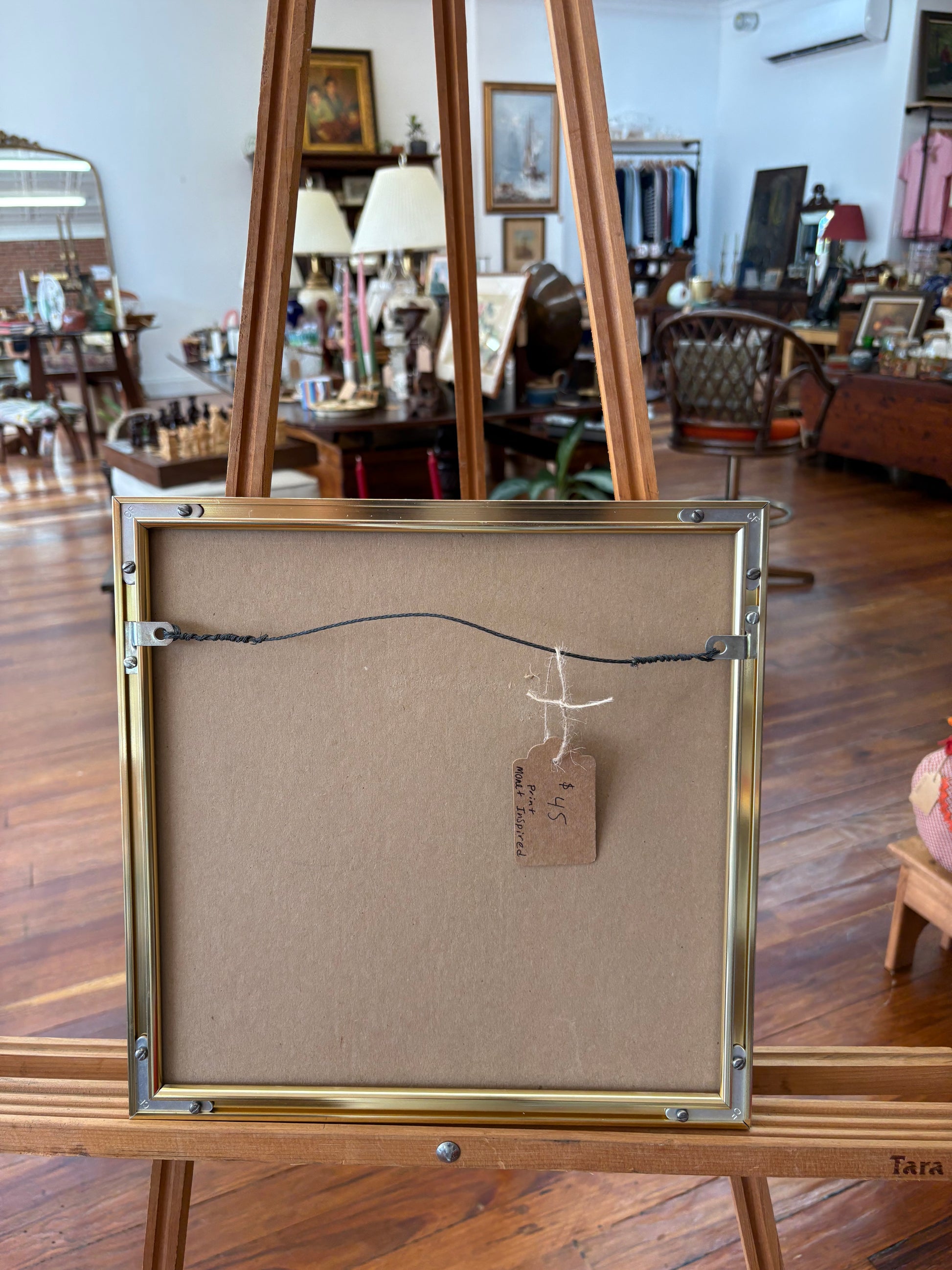 Excellent vintage condition. Print colors remain vibrant; no foxing or mat burn. Glass clear and scratch-free. Frame shows only micro-scuffs visible on close inspection.