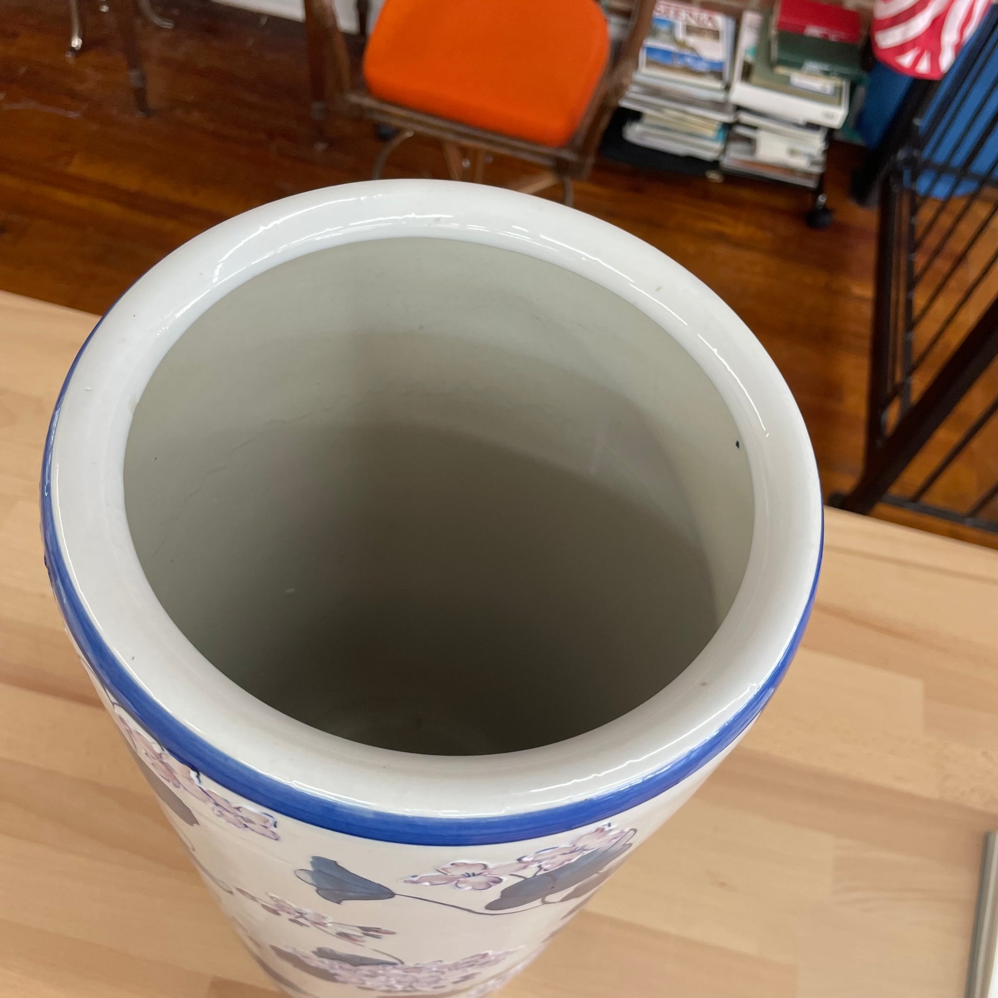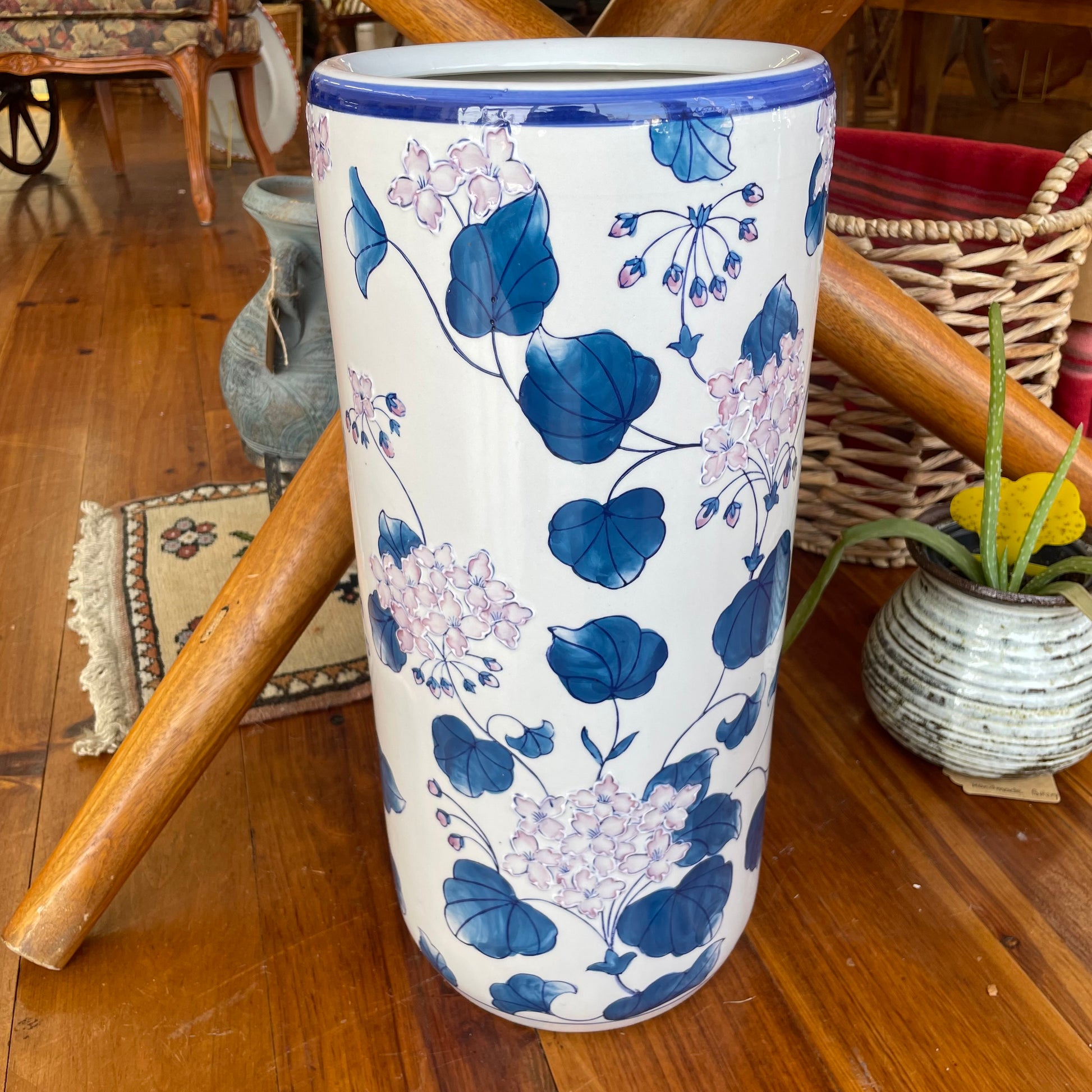 Hand-Painted Blue and White Porcelain Umbrella Holder, Floral Design