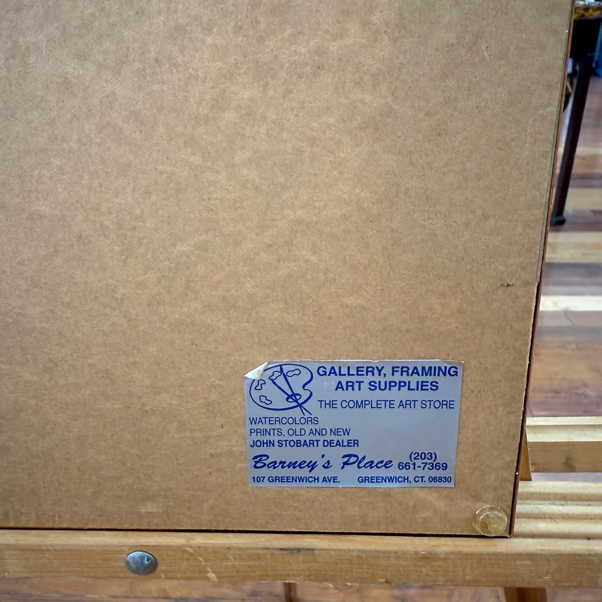 This evocative mixed media portrait titled Homage to Sargent is signed and dated by Connecticut artist Leigh Gustafson (1994). The piece showcases a powerful rendering of a woman in warm, expressive tones, with layered drawing and painting techniques that highlight Gustafson's sensitivity to texture, form, and emotion. The work pays tribute to the portrait tradition while offering a distinct voice of its own. Elegantly matted and housed in a reddish brown wood frame with black detailing, this piece arrives ready to hang.