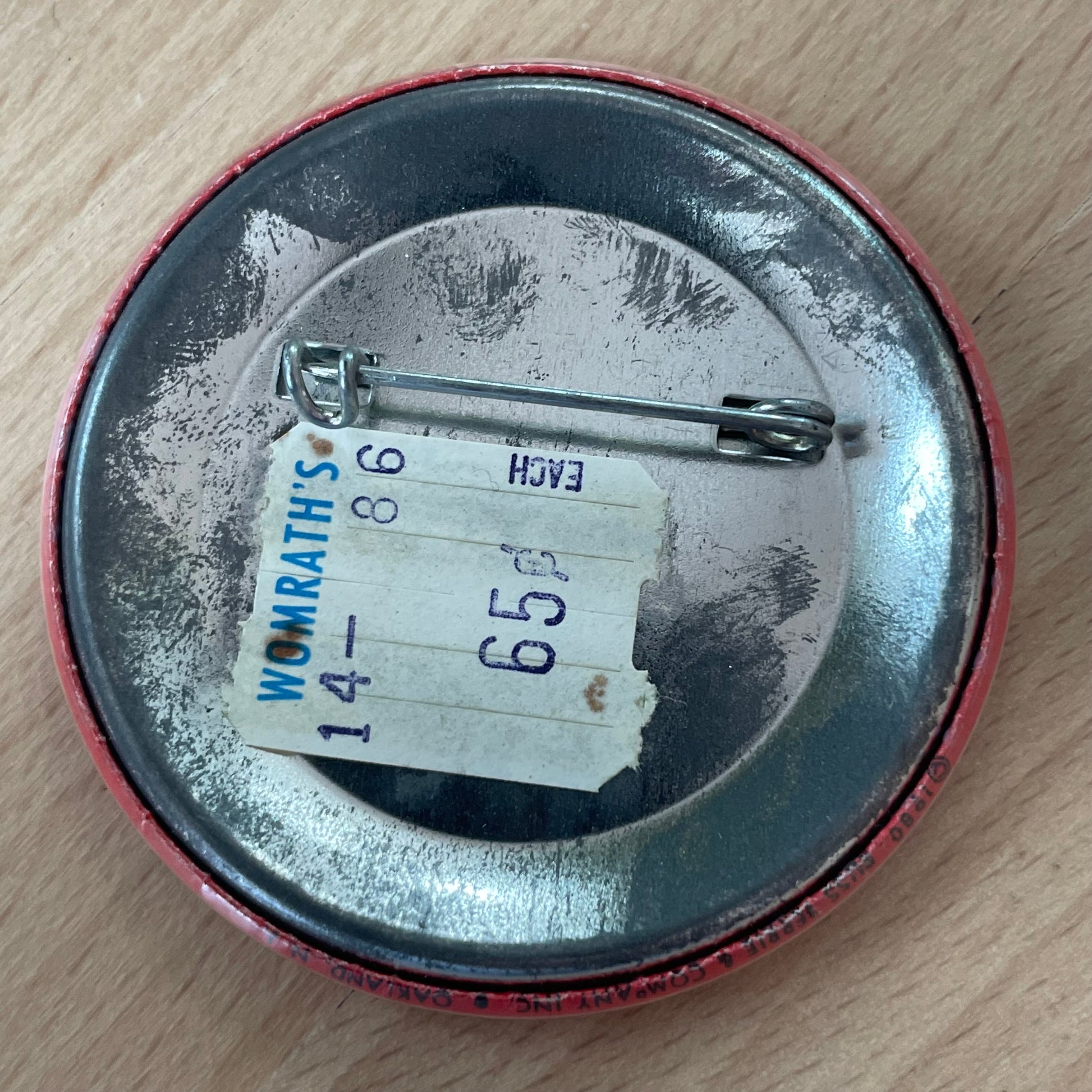 This vintage novelty pin is perfect for display, gifting, or accessorizing a denim jacket, tote bag, or corkboard collection. It pairs especially well with other 1970s pop culture and humor buttons.