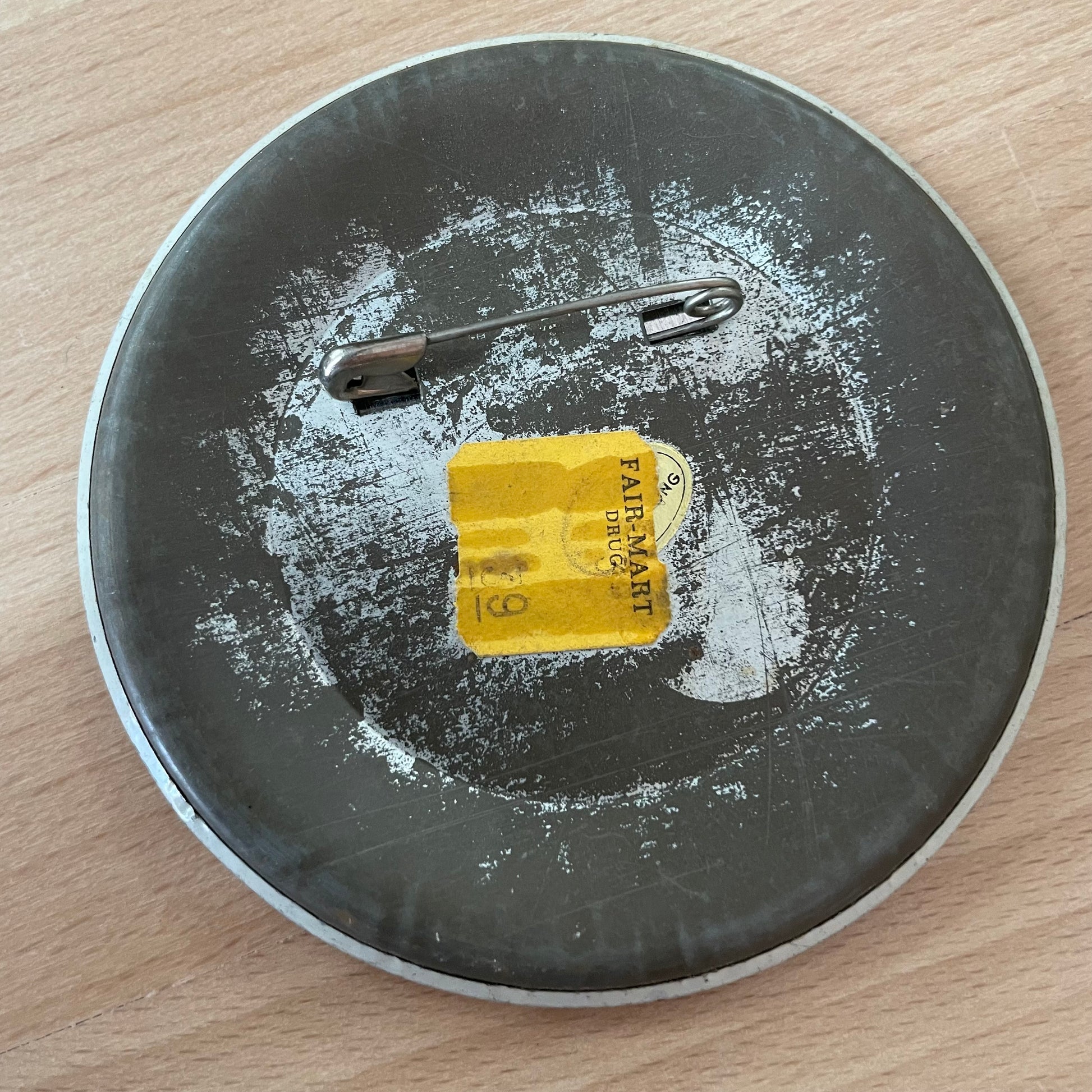 This oversized vintage button is perfect for styling on a denim jacket, bag, or as part of a retro pin collection. It also works as nostalgic wall art when displayed in a shadow box or pinned on a corkboard with other 1970s ephemera.