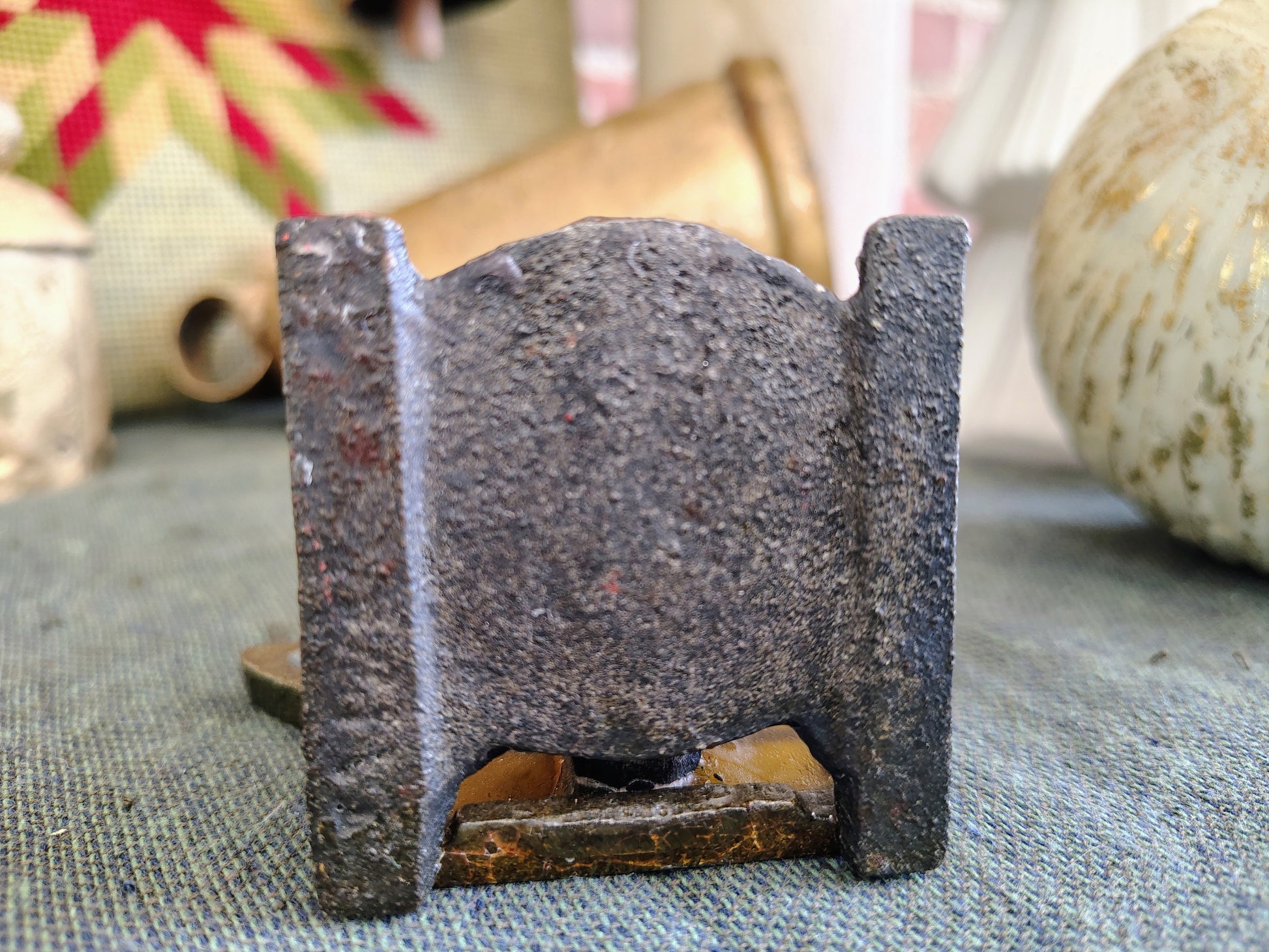 Charming vintage cast iron Christmas tree candle holder featuring colorful translucent insets in red, green, and amber “stained glass” style. When a tealight or small candle is placed inside, the light glows through the openings, creating a cozy, festive effect reminiscent of old-fashioned holiday lanterns.