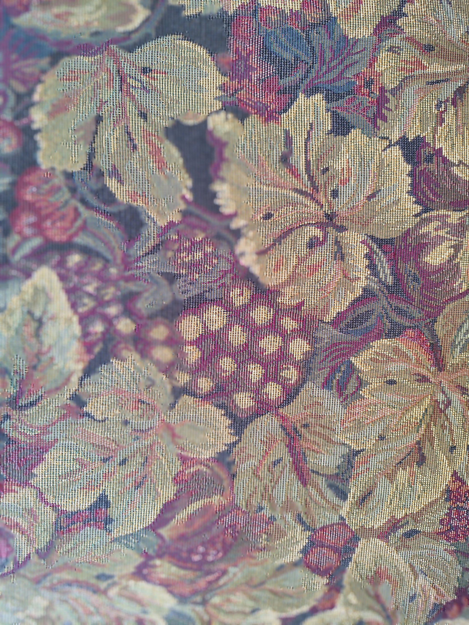 Seat: Removable cushion with floral tapestry upholstery