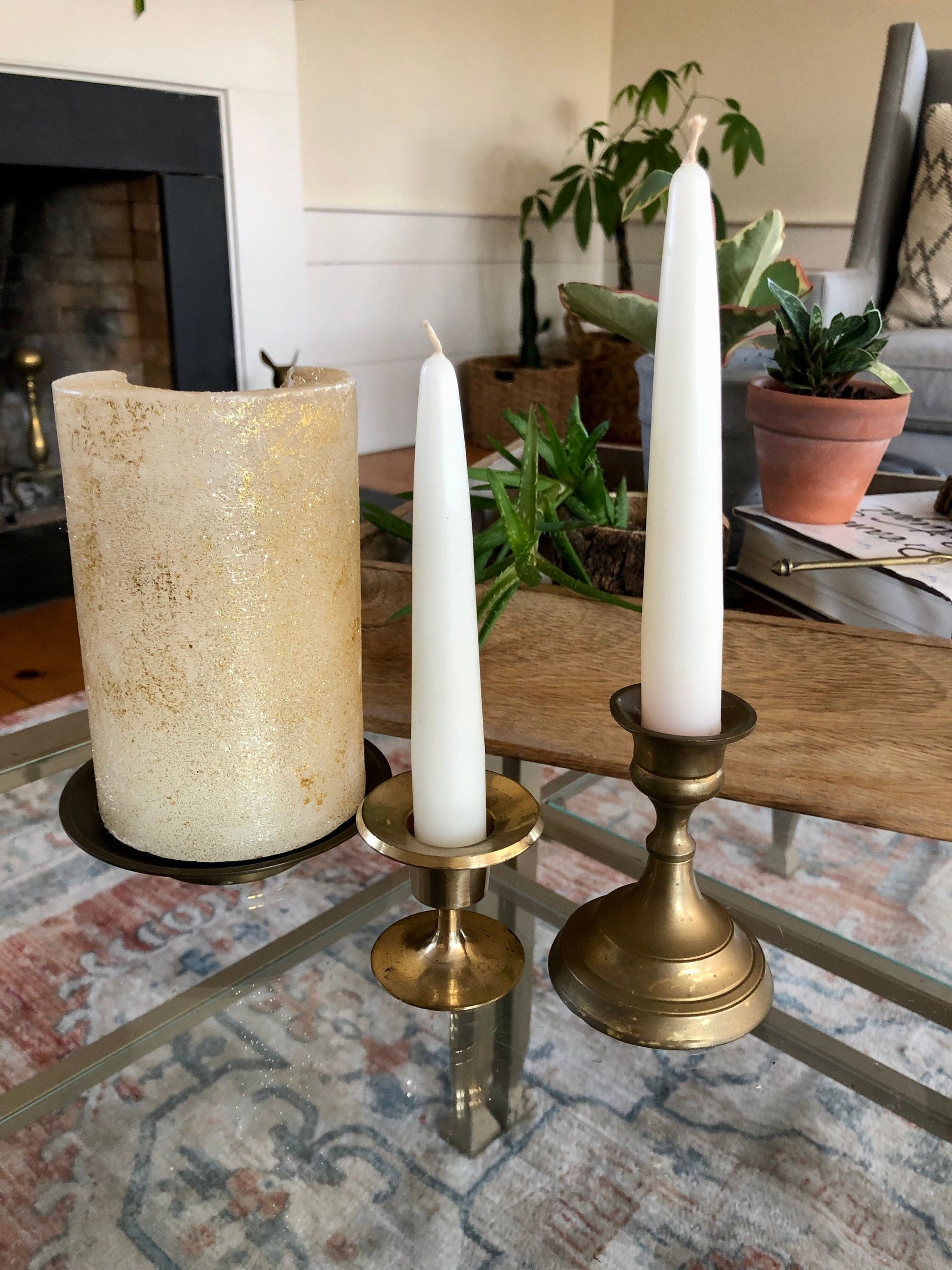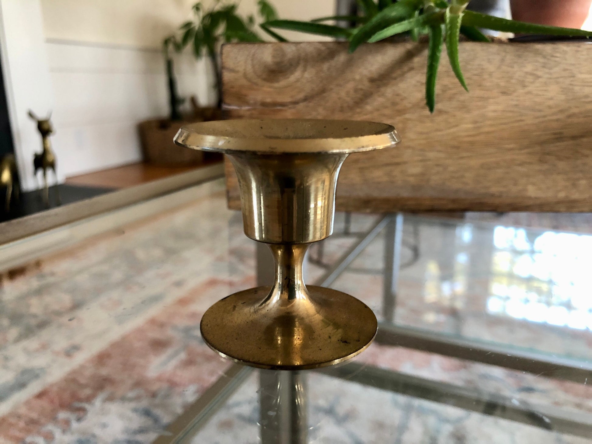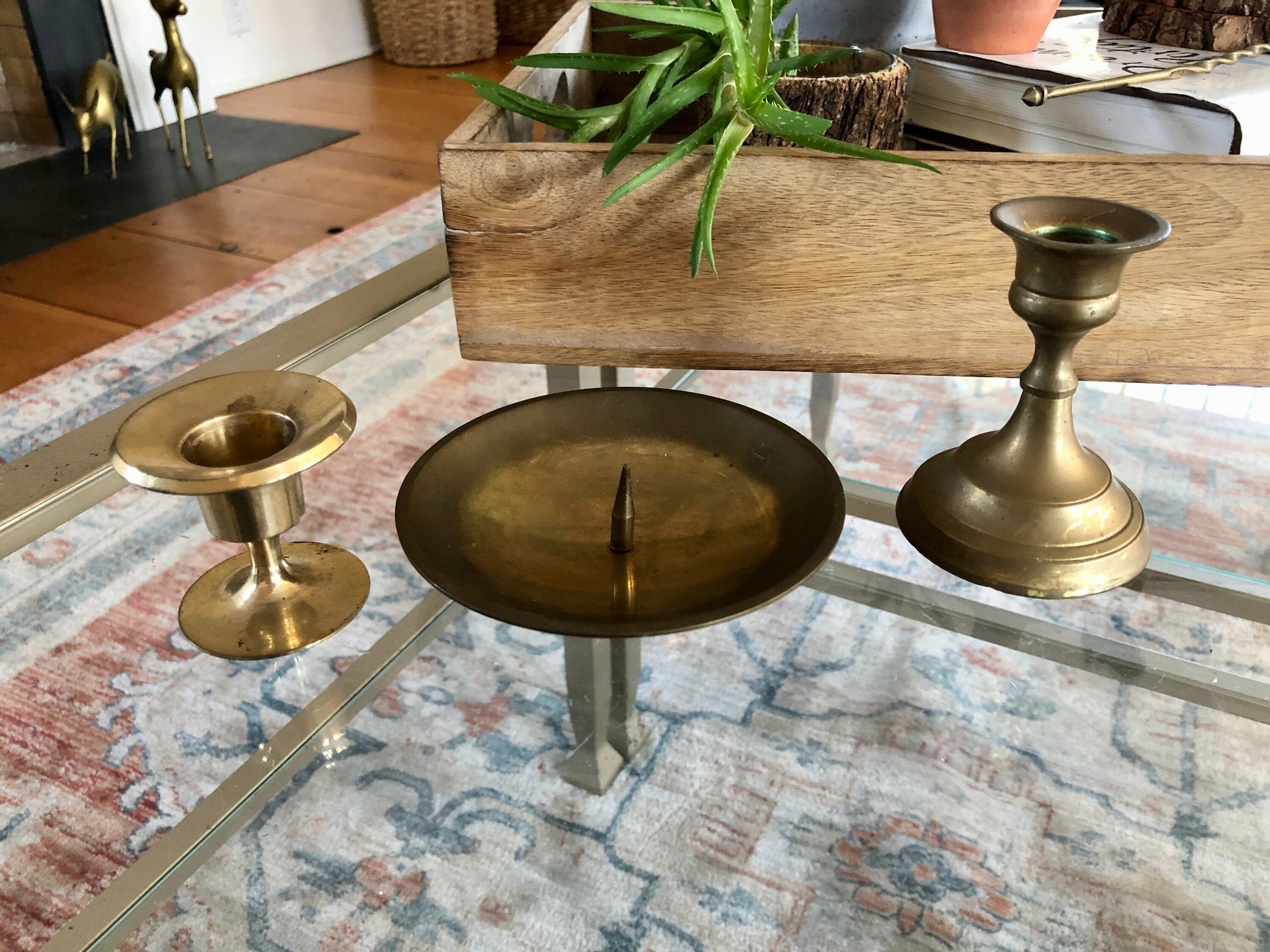 These are three beautiful brass candlestick holders found at the famous Brimfield Antique Show.