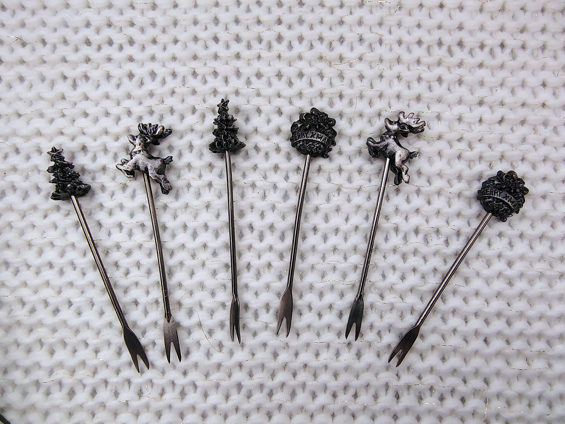 Vintage Holiday Cocktail Picks – Set of 6 Pewter Christmas Appetizer Forks