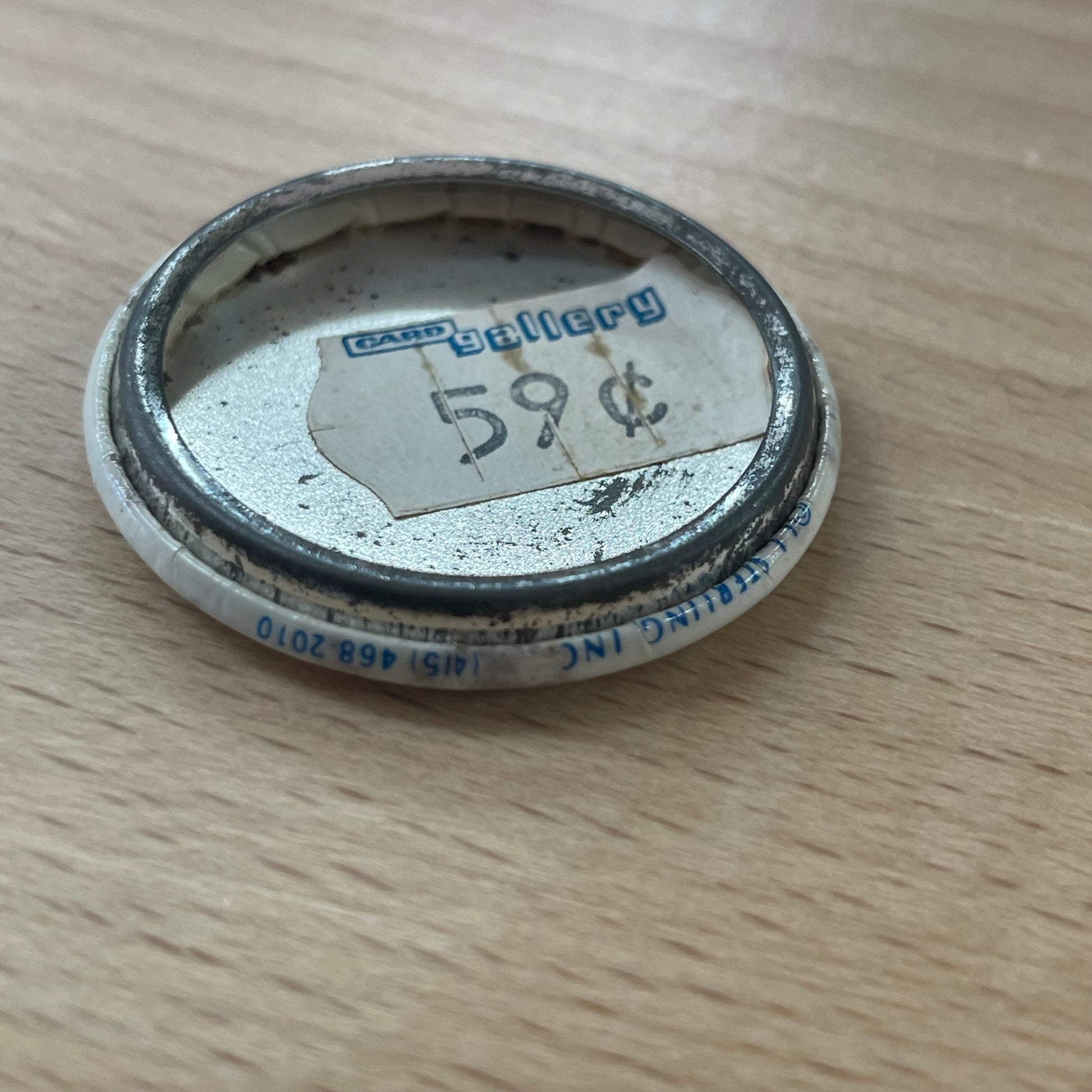 Good vintage condition with light age spotting and patina on the surface, consistent with age and wear. Pin mechanism remains functional.