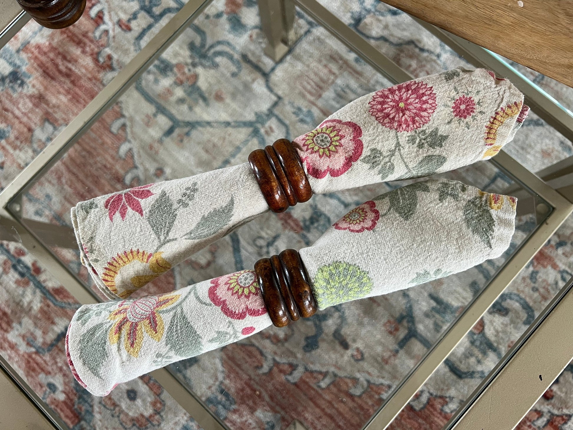 This is a great set of 8 vintage, wooden napkin rings by Knobler. These are retro and will look amazing on any table. Perfect for your brunch table.