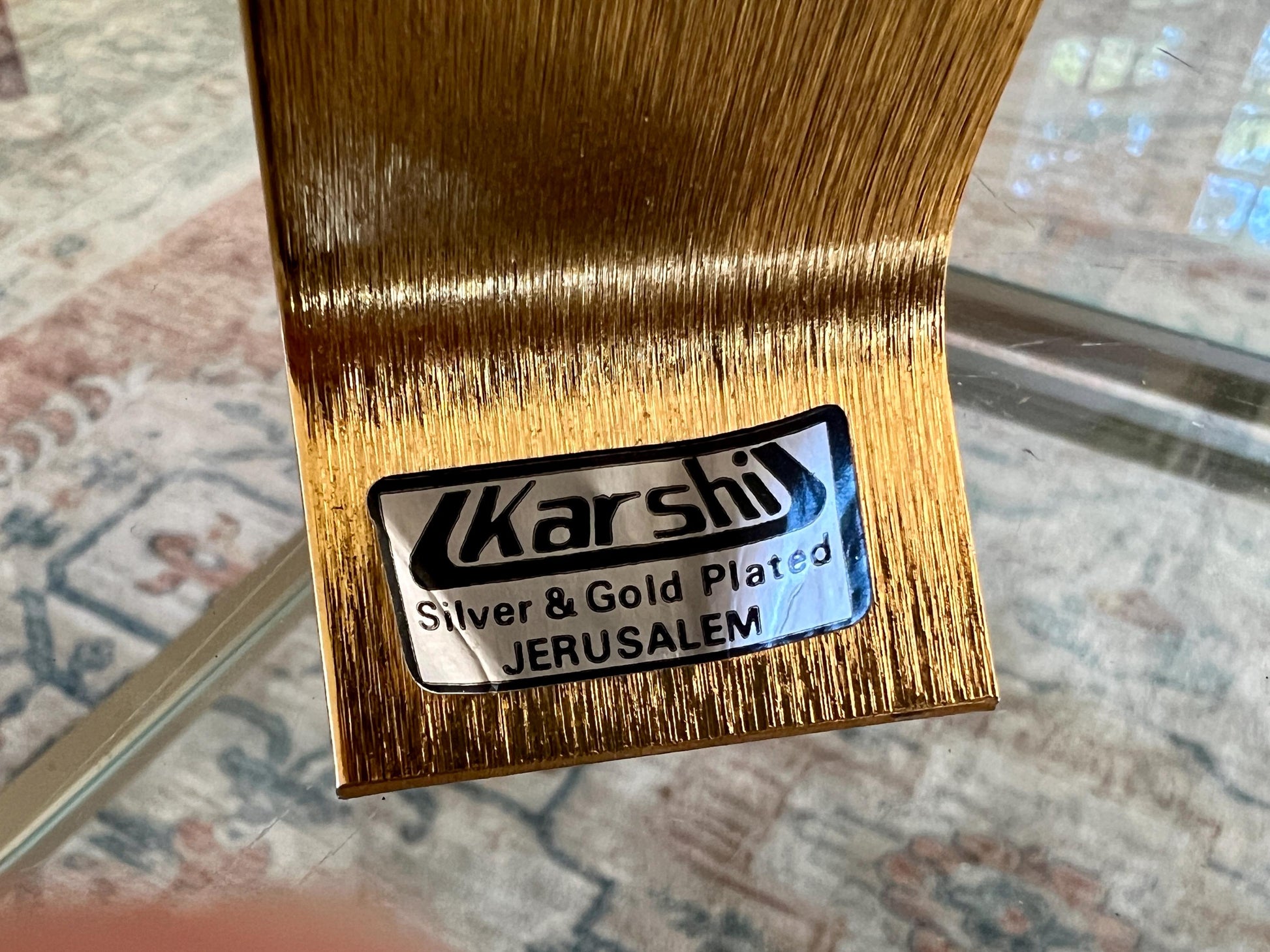 Vtg Mid Century kar shi Judaica Brass Menorah, Silver and Gold Plated, Footed Jewish Candle Holder, Jerusalem